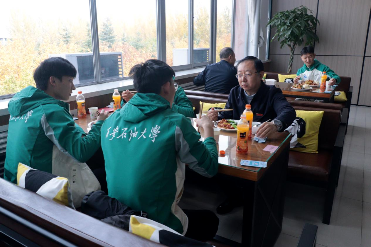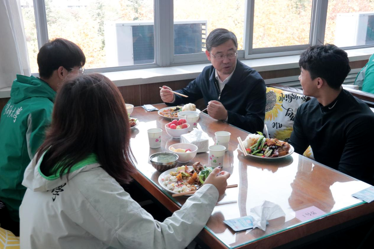 儀式結(jié)束后,校領(lǐng)導(dǎo)以及各相關(guān)職能部門和學(xué)院負(fù)責(zé)人與運動員代表共同舉行了“師生午餐會”,并向同學(xué)們贈送了紀(jì)念品。餐桌上,與會各位老師與學(xué)生們親切交流,詢問運動訓(xùn)練和在校生活情況,積極關(guān)心和回應(yīng)同學(xué)們近期關(guān)注和遇到的各類問題,在學(xué)習(xí)、就業(yè)、生涯規(guī)劃等方面給予同學(xué)們很多建議。大家紛紛表示,校領(lǐng)導(dǎo)及老師們的關(guān)懷讓他們倍感溫暖,未來將以更優(yōu)異的成績回報母校。