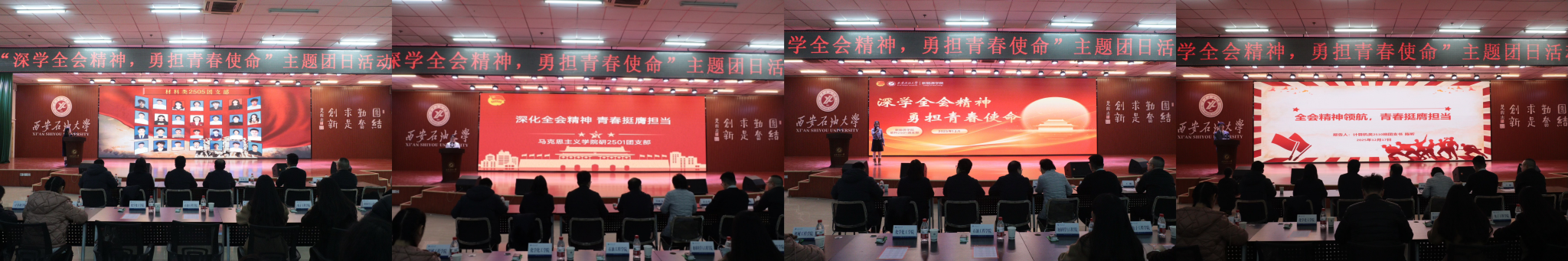 為引導(dǎo)團(tuán)員青年深刻領(lǐng)會(huì)黨的二十屆四中全會(huì)精神核心要義,集中展示我?;鶎訄F(tuán)組織風(fēng)采和主題團(tuán)日活動(dòng)實(shí)效,發(fā)揮先進(jìn)典型的示范引領(lǐng)作用,進(jìn)一步激發(fā)全校團(tuán)員青年的愛國(guó)熱情與奮斗精神,12月17日晚,學(xué)校在鄠邑校區(qū)騰輝大學(xué)生活動(dòng)中心舉辦“深學(xué)全會(huì)精神,勇?lián)啻菏姑敝黝}團(tuán)日活動(dòng)展示,副校長(zhǎng)種宇宏出席,相關(guān)職能處室負(fù)責(zé)人擔(dān)任評(píng)委,各院(系)團(tuán)委(團(tuán)總支)書記及300余名學(xué)生代表參加活動(dòng)。