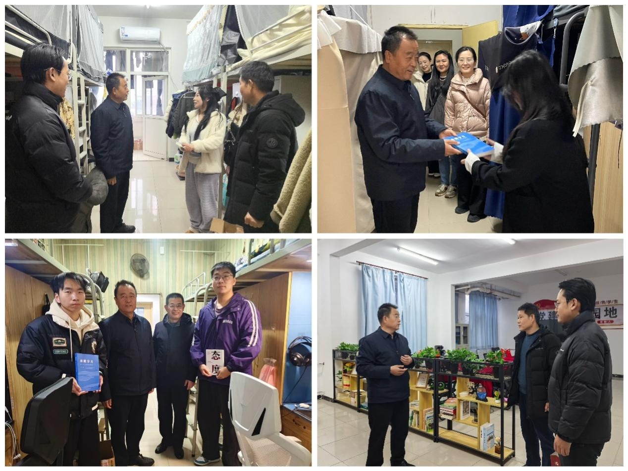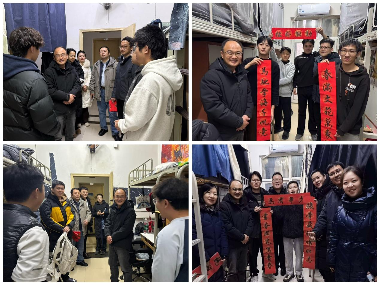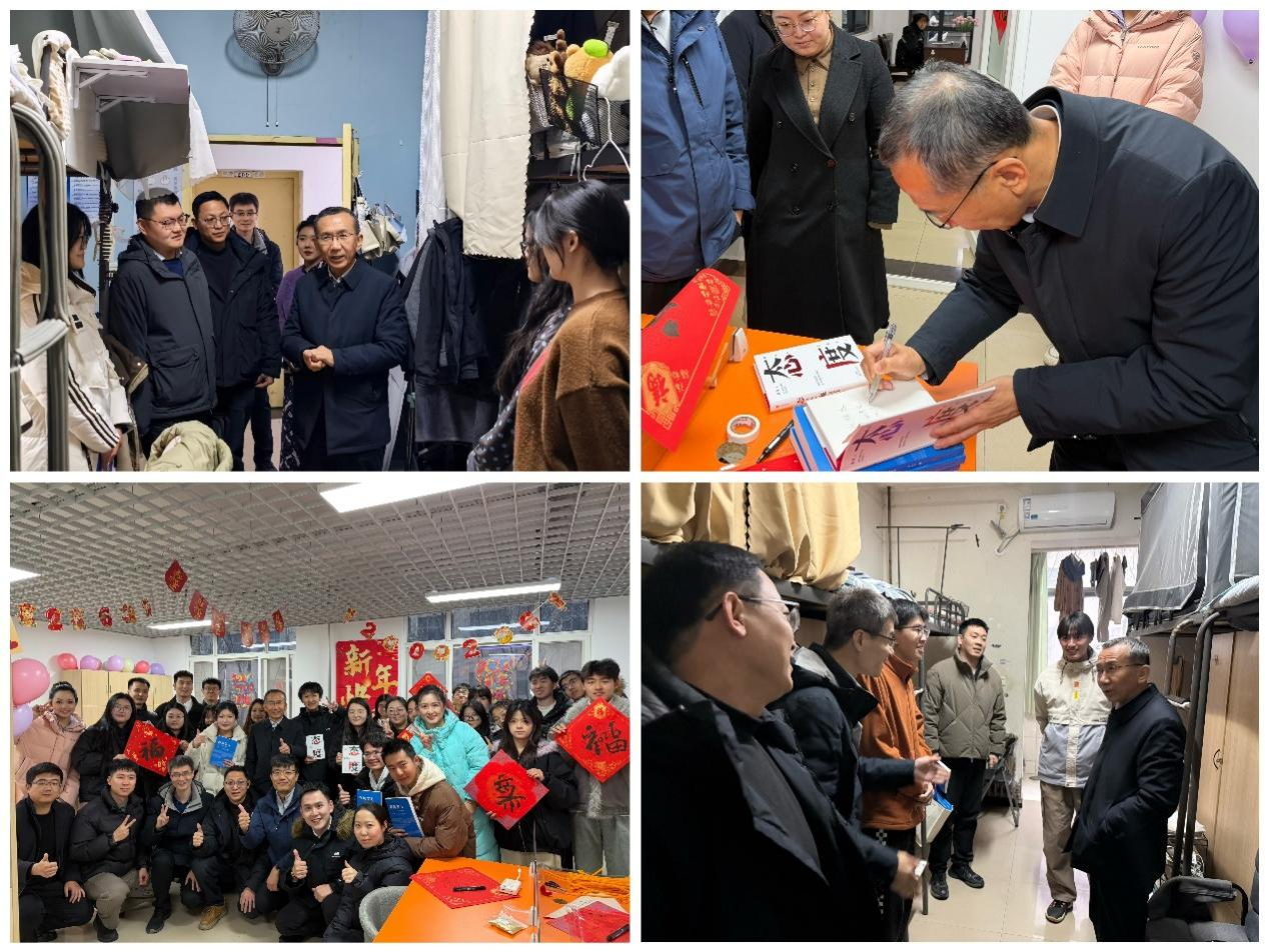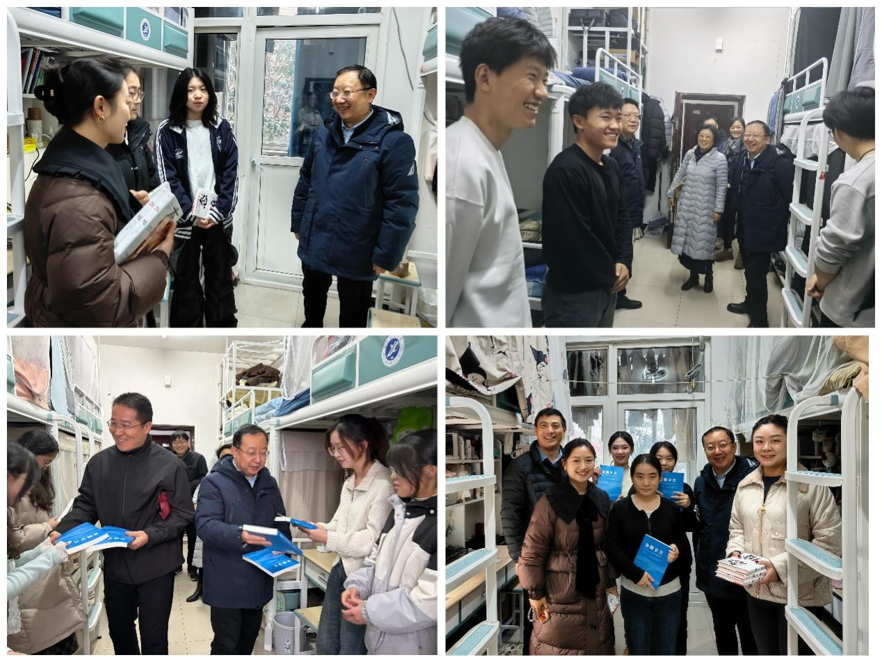歲末迎新,暖意融融。在2026年元旦佳節(jié)來臨之際,學(xué)校領(lǐng)導(dǎo)深入各學(xué)院學(xué)生宿舍,走訪慰問留校學(xué)子,不僅通過贈(zèng)送精心挑選的書籍、親筆書寫的對聯(lián)等方式,送上真摯的新年祝福,還與同學(xué)們親切暢談學(xué)習(xí)生活與未來規(guī)劃,傳遞學(xué)校的深切關(guān)懷與殷切期許,讓初雪籠罩的校園滿溢溫情。學(xué)生工作部(處)、研究生工作部以及各院(系)相關(guān)負(fù)責(zé)同志陪同走訪。