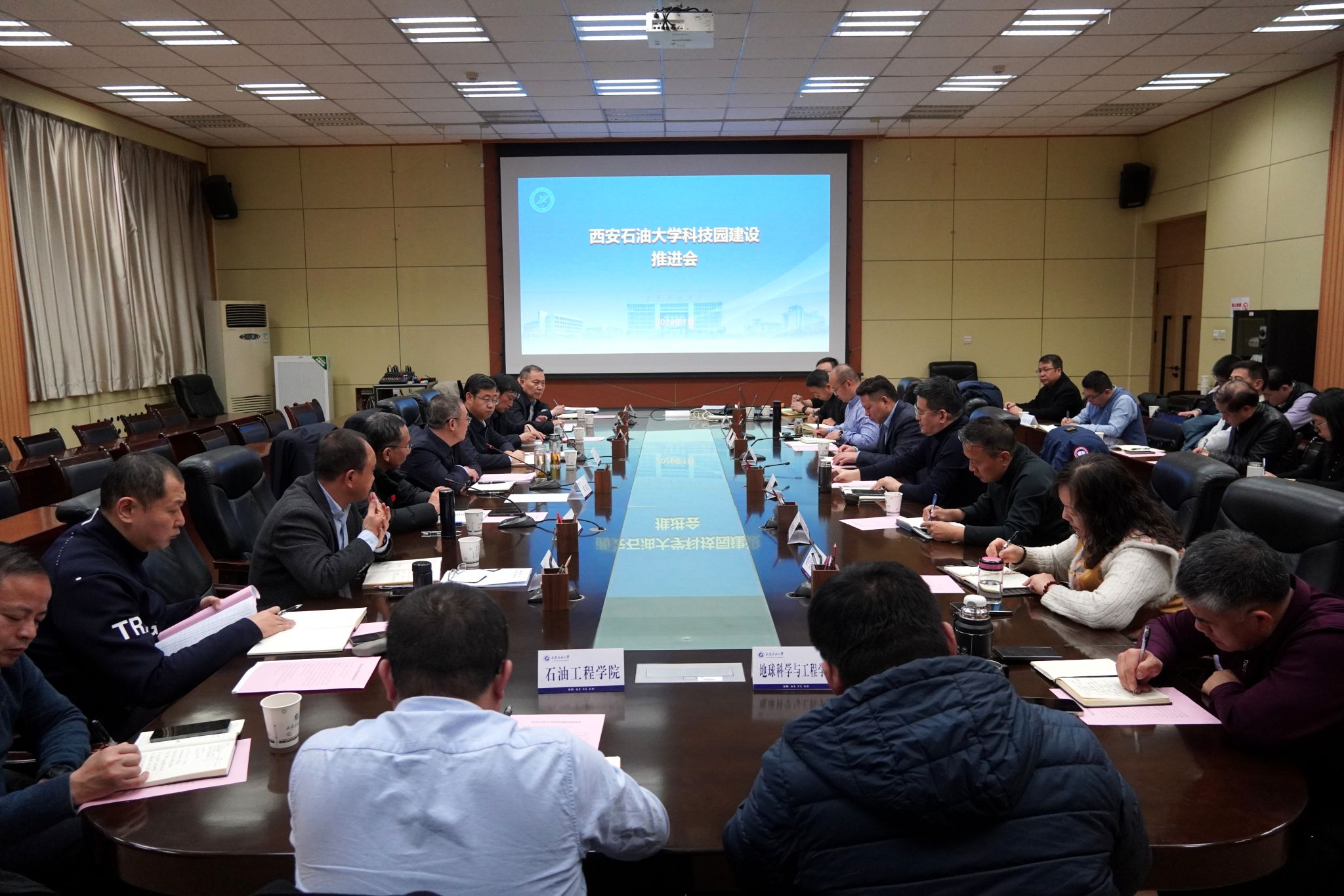 1月19日上午,學(xué)校科技園建設(shè)工作推進(jìn)會(huì)在雁塔校區(qū)會(huì)議中心第一會(huì)議室召開(kāi)。校黨政領(lǐng)導(dǎo)常江、王進(jìn)富、張木、蘇文甫、趙健出席會(huì)議。黨委辦公室(校長(zhǎng)辦公室)、組織部、發(fā)展規(guī)劃處等職能部門(mén)負(fù)責(zé)人,石油工程學(xué)院、地球科學(xué)與工程學(xué)院等相關(guān)學(xué)院及邊際油氣開(kāi)發(fā)技術(shù)研究院負(fù)責(zé)人,東方石化股份有限公司董事長(zhǎng)劉浩參加會(huì)議。會(huì)議由校長(zhǎng)王進(jìn)富主持。