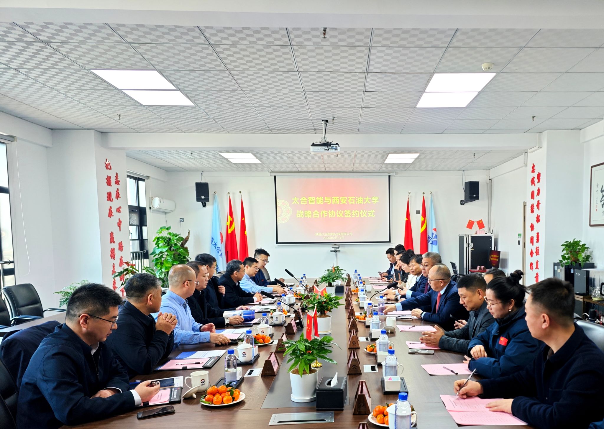 2月14日下午,我校與陜西太合智能鉆探有限公司(以下簡稱“公司”)在公司會議室簽署戰(zhàn)略合作框架協(xié)議。校長王進富、黨委副書記張木、副校長張榮軍,校友企業(yè)家聯(lián)合會會長、重慶智展齒輪傳動有限公司董事長何榮,陜西遠大電氣科技集團有限公司董事長郭小衛(wèi),公司董事長王義紅、財務(wù)總監(jiān)李歡、國內(nèi)經(jīng)營事業(yè)部總裁楊新鋒、工程技術(shù)事業(yè)部總裁王軍出席簽約儀式。