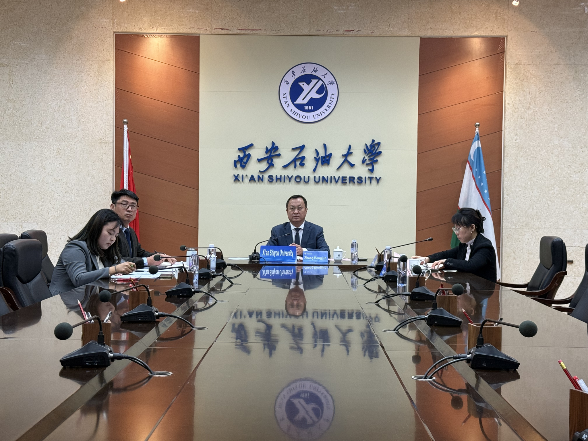 3月6日下午,我校與烏茲別克斯坦能源部、烏茲別克斯坦高等教育、科學(xué)與創(chuàng)新部(以下簡稱“能源部”、“教育部”)及撒馬爾罕國立大學(xué)召開西安石油大學(xué)烏茲別克斯坦分校建設(shè)工作線上會議,會議在雁塔校區(qū)會議中心第二會議室舉行。能源部副部長烏米德?馬馬達(dá)米諾夫、教育部副部長薩多爾?拉賈博夫、撒馬爾罕國立大學(xué)教學(xué)事務(wù)副校長艾哈邁德瓊?索萊耶夫、科研副校長哈基姆?胡什瓦克托夫、國際合作副校長阿克馬爾?阿哈托夫、烏茲別克斯坦大唐國際投資有限公司董事長汪小又等線上參會。副校長張榮軍出席會議。