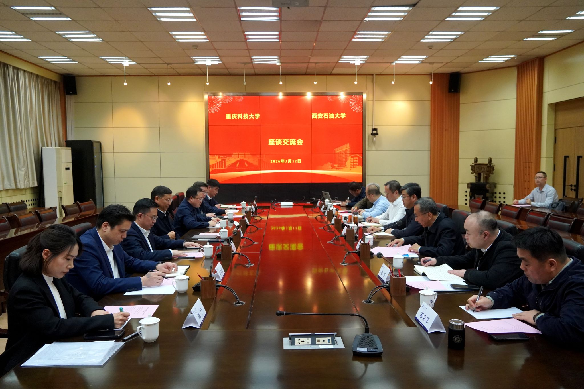 3月12日下午,重慶科技大學(xué)校長趙明階帶隊來校交流訪問,副校長柏偉、戚志林陪同來訪。我校校長王進富、副校長張榮軍出席會議,會議由校黨委副書記張木主持。雙方圍繞“十五五”規(guī)劃編制、學(xué)科建設(shè)、產(chǎn)教融合及校企合作等領(lǐng)域開展交流座談。