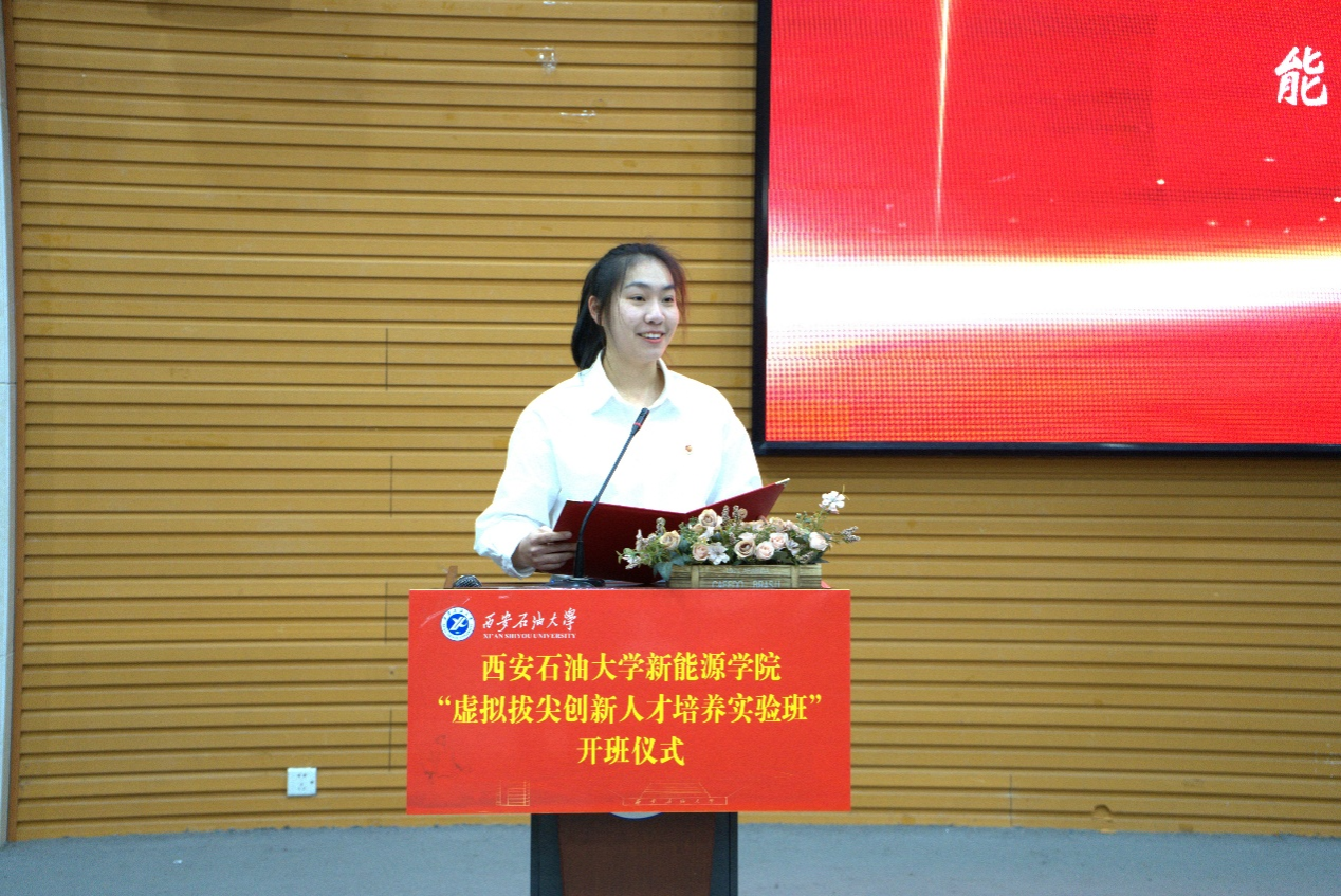 能科2501班張海婷作為學(xué)生代表發(fā)言,她結(jié)合自身感悟,深刻闡釋了對(duì)實(shí)驗(yàn)班“虛擬”模式與“拔尖”定位的理解,號(hào)召全體同學(xué)立大志、明方向、勤奮進(jìn),善用校內(nèi)外優(yōu)質(zhì)資源、秉持抱團(tuán)成長(zhǎng)理念,既要筑牢專業(yè)知識(shí)根基,也要心懷家國(guó)使命擔(dān)當(dāng),在新能源發(fā)展賽道上腳踏實(shí)地、逐夢(mèng)前行,用青春之智、青春之力書寫能源強(qiáng)國(guó)建設(shè)的新篇章。
