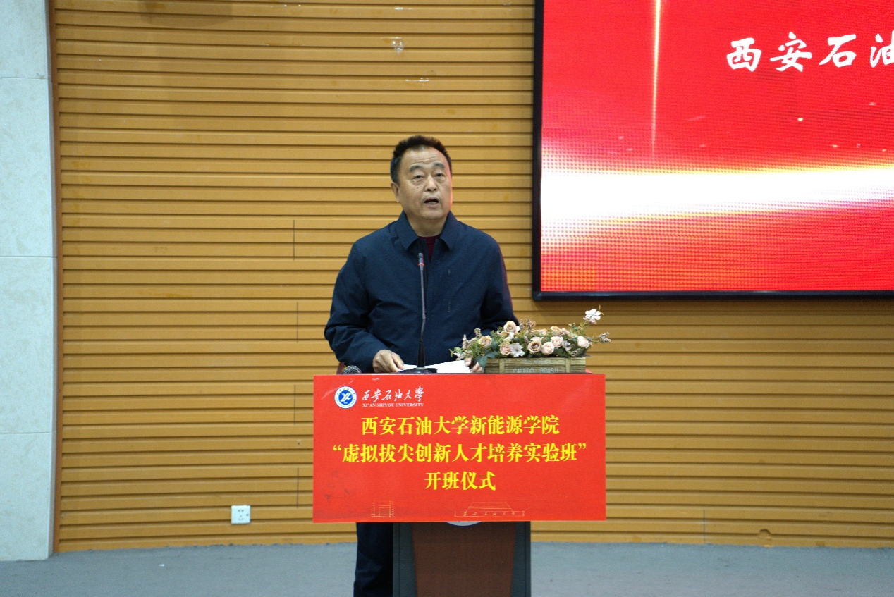 為深入推進(jìn)人才培養(yǎng)模式改革,全面落實(shí)立德樹人根本任務(wù),著力培育適配國(guó)家“雙碳”戰(zhàn)略與能源強(qiáng)國(guó)建設(shè)需求的拔尖創(chuàng)新人才,3月18日下午,新能源學(xué)院首屆“虛擬拔尖創(chuàng)新人才培養(yǎng)實(shí)驗(yàn)班”開班儀式在鄠邑校區(qū)崇文樓118報(bào)告廳順利舉行。校黨委副書記程永清出席儀式并講話,中石化綠源地?zé)崮埽兾鳎╅_發(fā)有限公司執(zhí)行董事兼總經(jīng)理劉斌、陜西工程勘察研究院有限公司總工程師杜明、陜西眾森電能科技有限公司常務(wù)副總經(jīng)理、眾森檢測(cè)股份有限公司董事長(zhǎng)兼總經(jīng)理冉旭等企業(yè)導(dǎo)師應(yīng)邀出席。學(xué)校相關(guān)職能部門負(fù)責(zé)人、新能源學(xué)院領(lǐng)導(dǎo)班子成員、實(shí)驗(yàn)班班主任及全體入選學(xué)生共同參加儀式。儀式由新能源學(xué)院黨委副書記袁家寶主持。