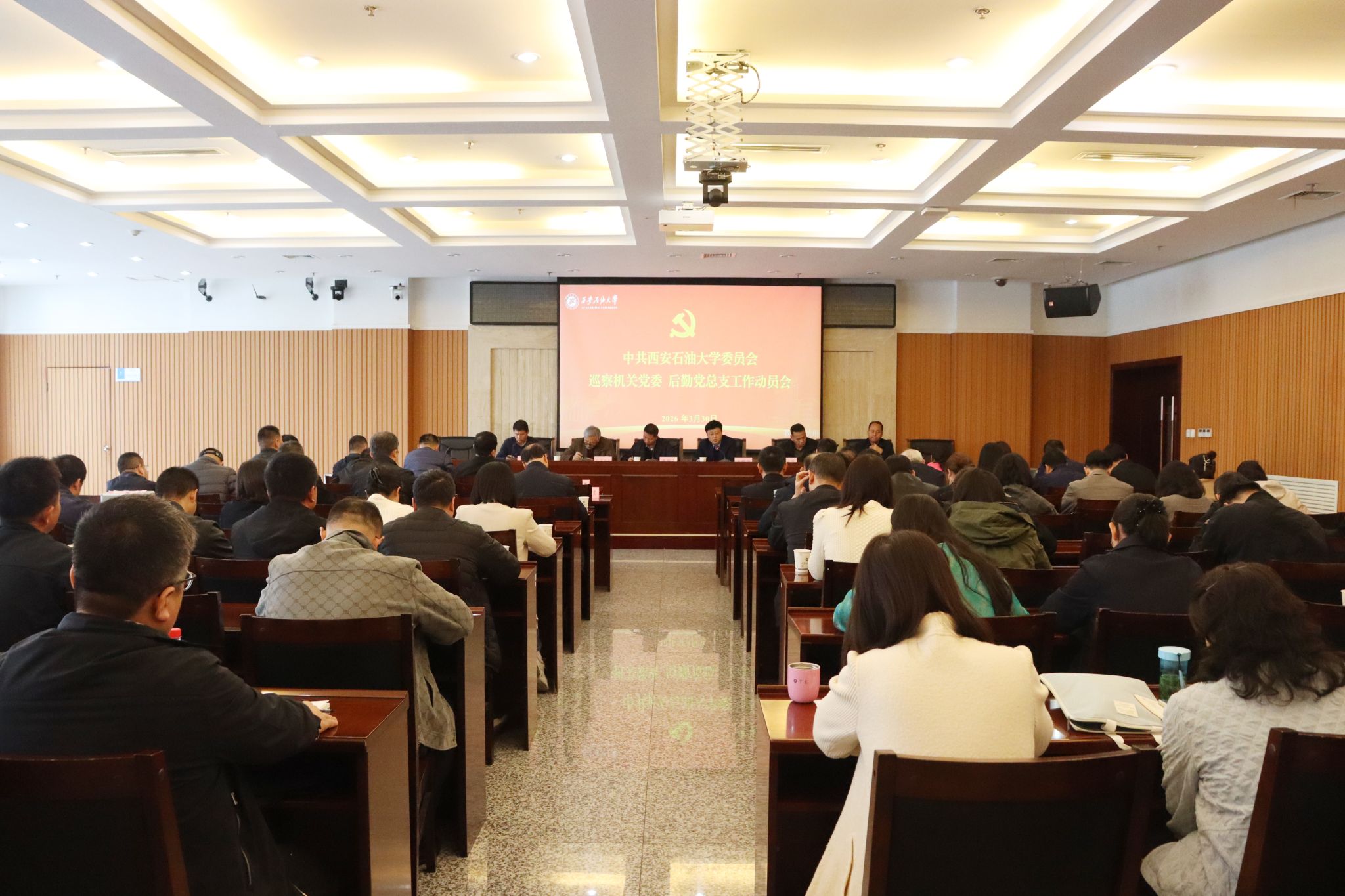 根據(jù)學(xué)校黨委巡察工作統(tǒng)一部署,3月30日下午,三屆黨委第三輪校內(nèi)巡察工作動員會在鄠邑校區(qū)圖書館第一會議室召開。校黨委副書記、紀(jì)委書記、監(jiān)察專員,校黨委巡察工作領(lǐng)導(dǎo)小組副組長王輝強出席會議并講話。第三輪巡察第一、第二巡察組全體成員,巡察辦全體人員,被巡察單位黨組織領(lǐng)導(dǎo)班子成員、黨支部書記、科級干部、學(xué)校第三次黨代會代表、管理干部代表及民主黨派代表參加會議。會議由黨委巡察工作辦公室主任茍毅飛主持。