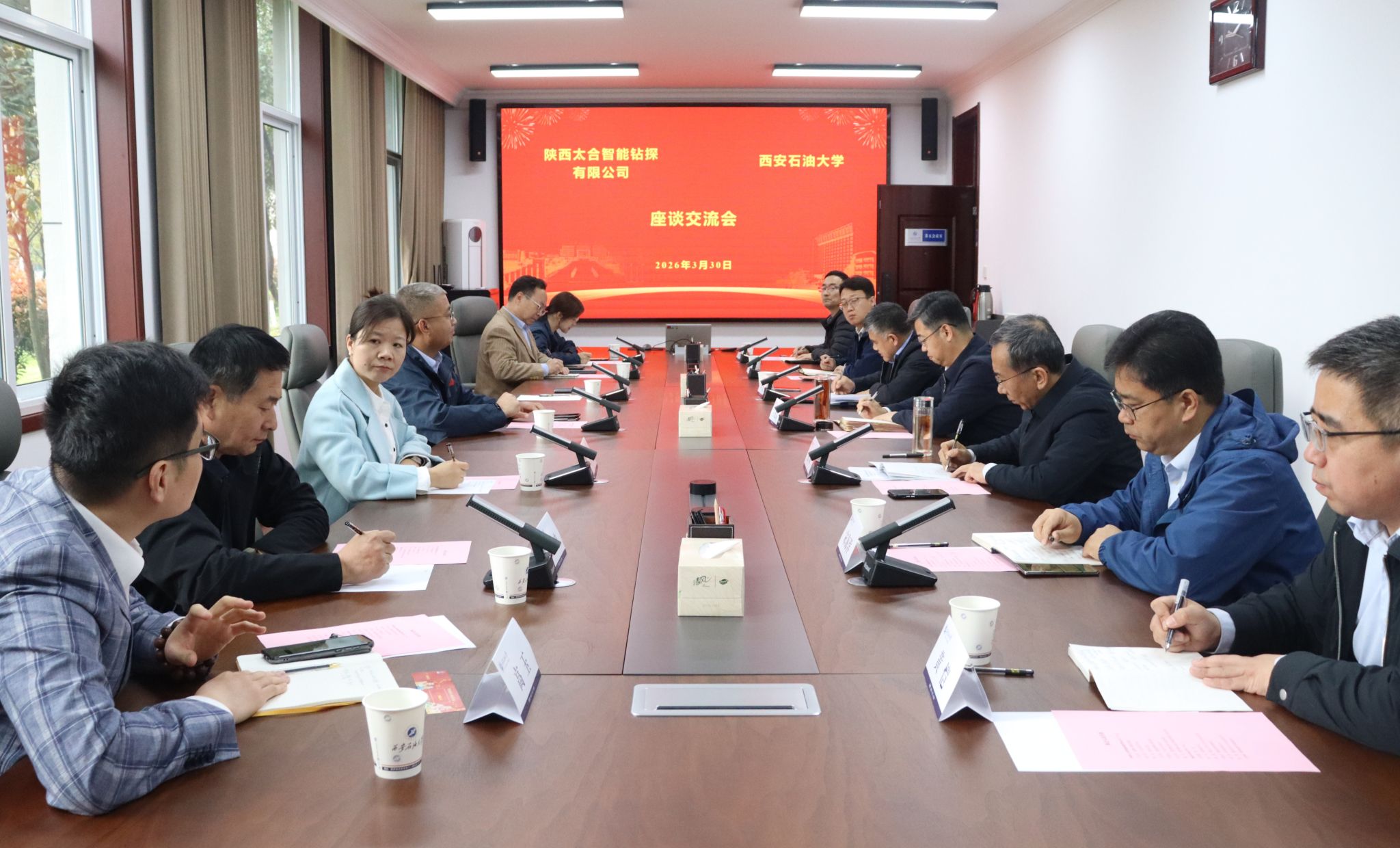 3月30日上午,陜西太合智能鉆探有限公司董事長王義紅一行蒞臨我校鄠邑校區(qū),雙方圍繞科研項目立項、新能源事業(yè)發(fā)展、國際合作拓展等核心議題開展深入交流。校長王進富出席座談會,會議由黨委副書記張木主持。