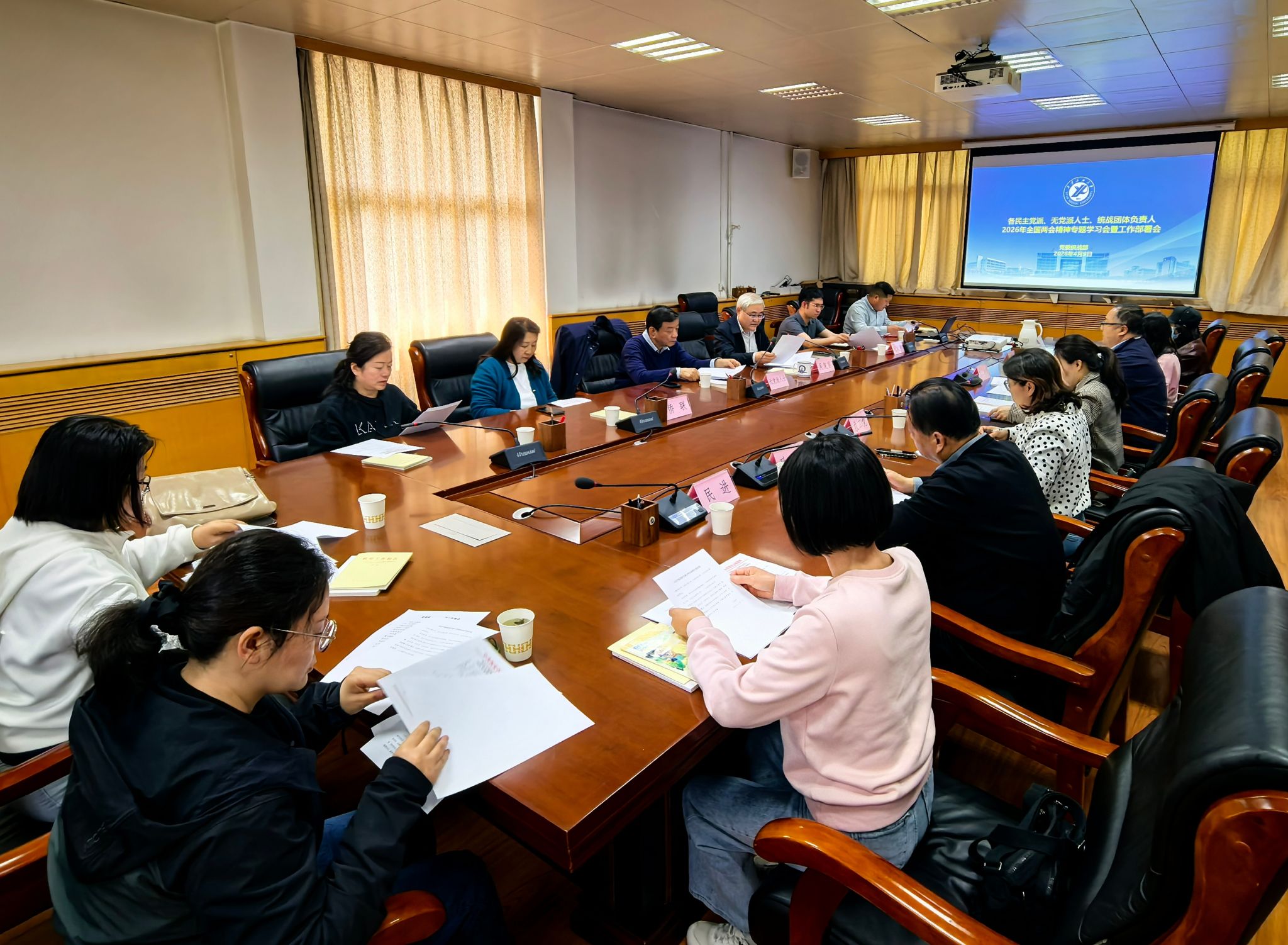 為進(jìn)一步強(qiáng)化政治理論學(xué)習(xí),安排部署本學(xué)期統(tǒng)戰(zhàn)重點(diǎn)工作,學(xué)校于4月9日下午在雁塔校區(qū)行政樓五樓會(huì)議室召開(kāi)2026年全國(guó)兩會(huì)精神專(zhuān)題學(xué)習(xí)會(huì)暨工作安排部署會(huì),各民主黨派支部委員,無(wú)黨派人士負(fù)責(zé)人,僑聯(lián)、留聯(lián)會(huì)、知聯(lián)會(huì)負(fù)責(zé)人參加。會(huì)議由校黨委委員、黨委統(tǒng)戰(zhàn)部部長(zhǎng)吳復(fù)雷主持。