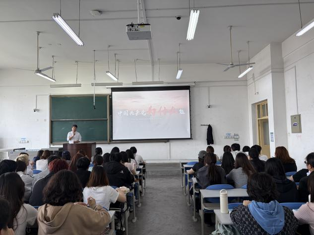 李圳老師以“救國(guó)”“興國(guó)”“富國(guó)”“強(qiáng)國(guó)”四個(gè)主題串講中國(guó)共產(chǎn)黨的誕生與壯大,從理論探索到實(shí)踐奮斗,肩負(fù)起中國(guó)近代反帝反封建、反抗三座大山的歷史性重任。從大革命到國(guó)共合作再到抗日戰(zhàn)爭(zhēng)勝利成立新中國(guó),突破技術(shù)封鎖實(shí)現(xiàn)工業(yè)現(xiàn)代化,從改革開放到進(jìn)入中國(guó)特色社會(huì)主義新時(shí)代,共產(chǎn)黨人前赴后繼沖破一切枷鎖錘煉革命隊(duì)伍、領(lǐng)導(dǎo)中國(guó)革命、堅(jiān)守共產(chǎn)主義理想信念、保持艱苦奮斗作風(fēng),這一精神譜系傳承不絕。李圳老師圍繞中國(guó)革命道路的開創(chuàng)與探索,總結(jié)中國(guó)共產(chǎn)黨人從實(shí)際出發(fā)將馬克思主義普遍真理與中國(guó)的革命建設(shè)實(shí)踐結(jié)合,走出一條具有中國(guó)特色的社會(huì)主義之路。李圳老師使用精彩紛呈的PPT娓娓道出中國(guó)共產(chǎn)黨建黨百年的歷史與啟示,用近現(xiàn)代歷史回顧“中國(guó)共產(chǎn)黨為什么能,馬克思主義為什么行,中國(guó)特色社會(huì)主義為什么好”等時(shí)代命題。