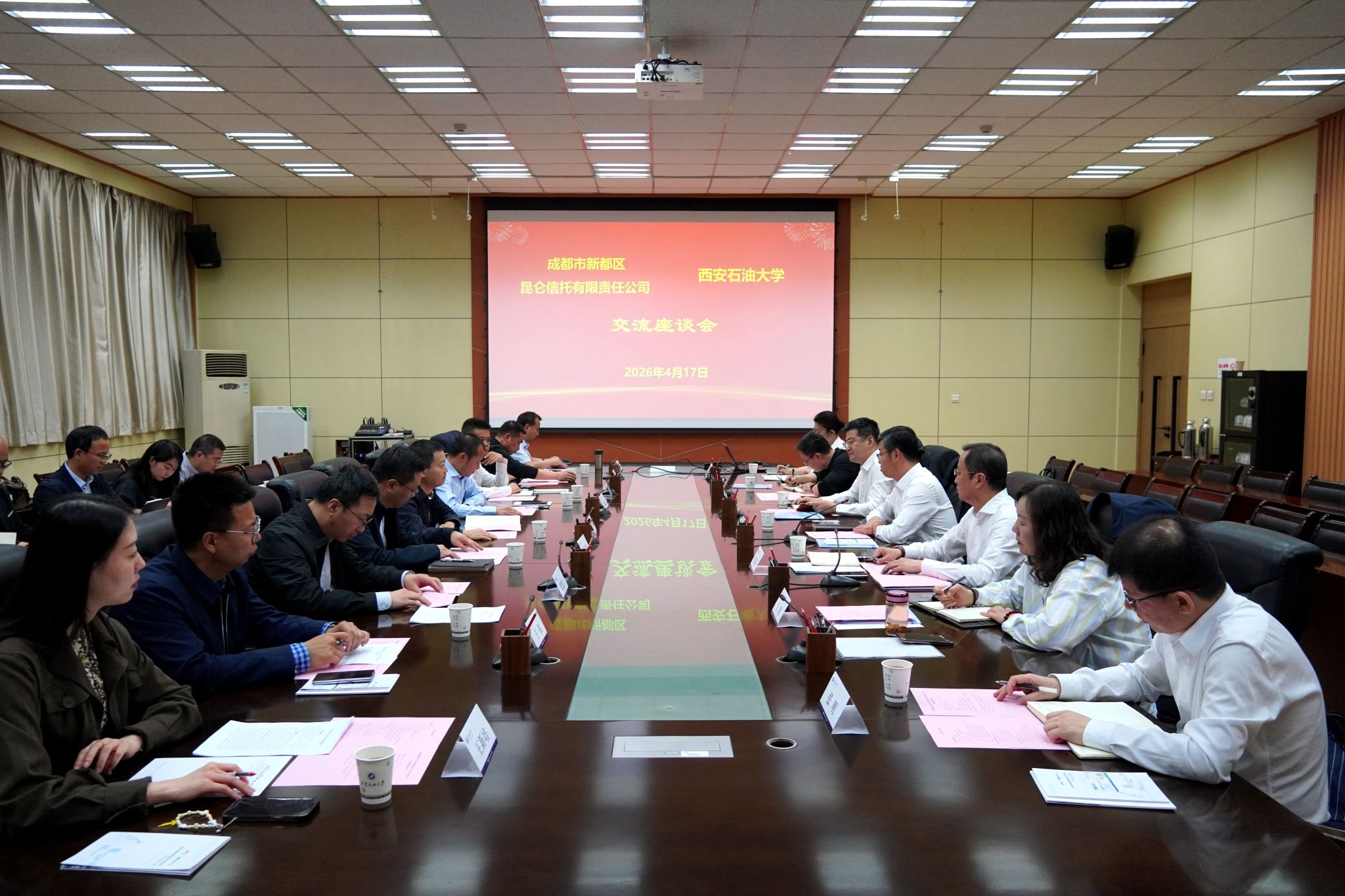 成都市新都區(qū)組織部、新都高新區(qū)主要部門負(fù)責(zé)人,昆侖信托有限責(zé)任公司西北地區(qū)主要負(fù)責(zé)人,學(xué)??蒲刑帯⑹凸こ虒W(xué)院、邊際油氣開發(fā)技術(shù)研究院、西安石大資產(chǎn)經(jīng)營有限公司等相關(guān)單位負(fù)責(zé)人參加會(huì)議。