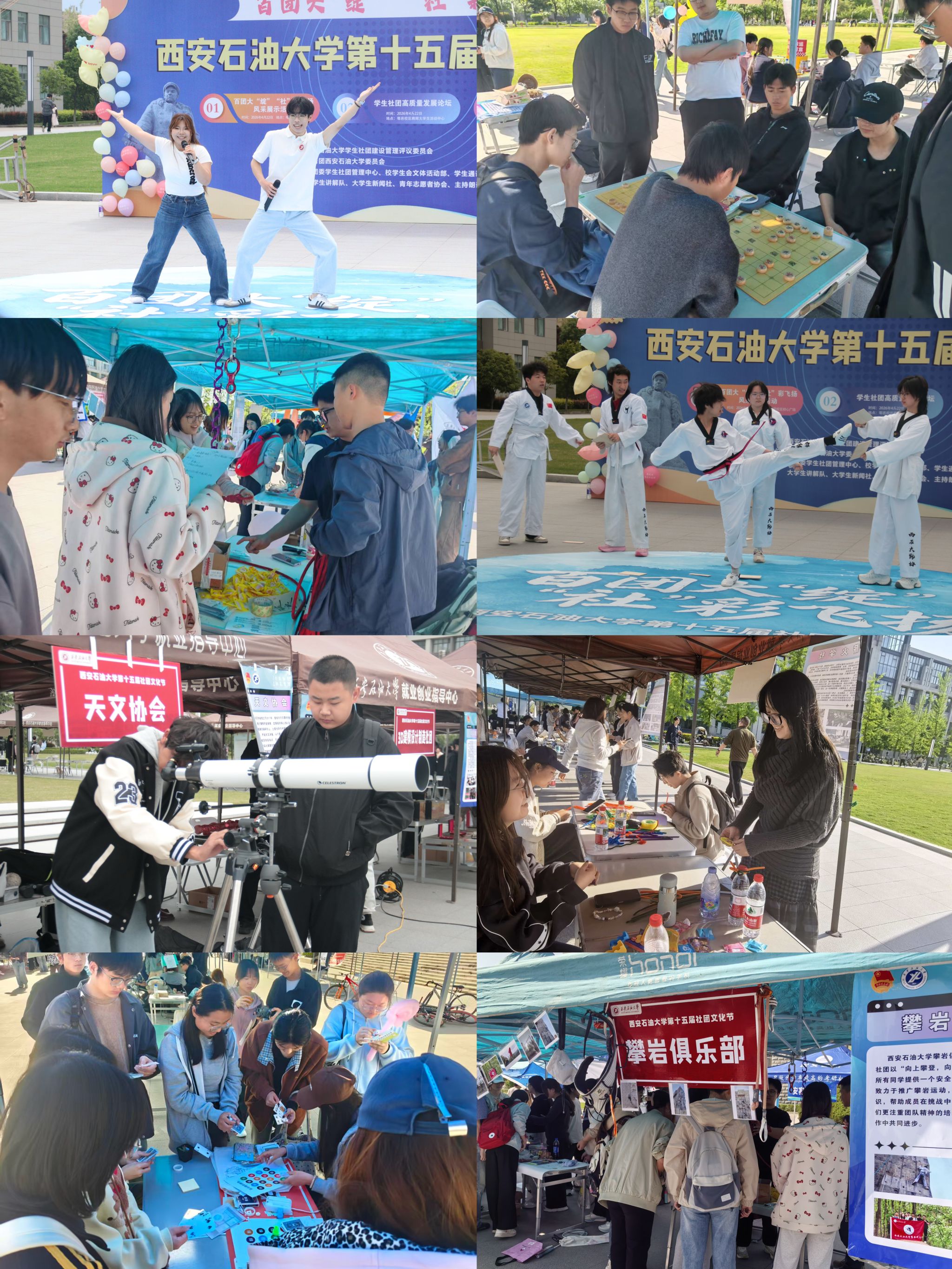 社團(tuán)風(fēng)采展示現(xiàn)場(chǎng)氣氛熱烈、青春飛揚(yáng)。鄠邑校區(qū)初心廣場(chǎng)上全校各學(xué)生社團(tuán)集中亮相、各展所長(zhǎng)。思想政治類、學(xué)術(shù)科技類、文化體育類、志愿公益類等社團(tuán)輪番登場(chǎng),帶來(lái)互動(dòng)體驗(yàn)、才藝展演、技能比拼等豐富活動(dòng)。書法繪畫、音樂演奏、趣味競(jìng)技、創(chuàng)意DIY、學(xué)術(shù)交流、工作展示等特色項(xiàng)目精彩紛呈,充分展現(xiàn)西石大學(xué)子多才多藝、昂揚(yáng)向上的精神風(fēng)貌,形成了“百花齊放、多元共融、充滿活力”的校園社團(tuán)文化生態(tài)。