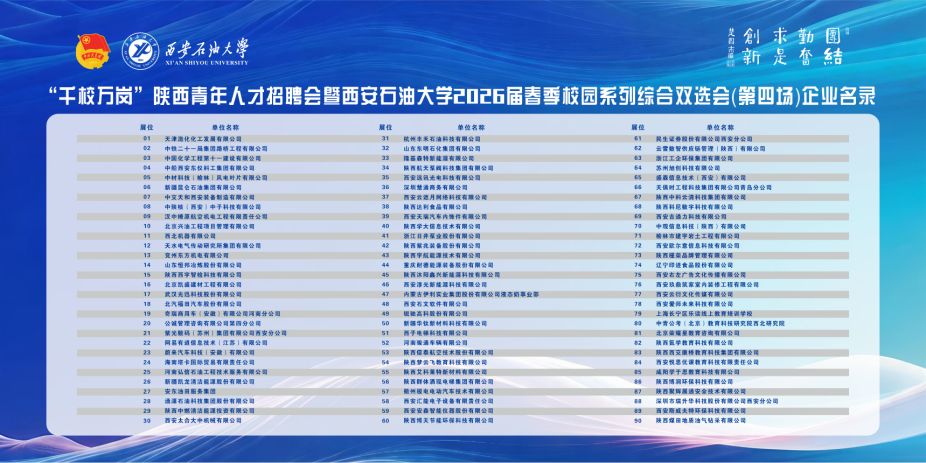 為深入貫徹落實(shí)高校畢業(yè)生就業(yè)創(chuàng)業(yè)工作部署,扎實(shí)推進(jìn)“千校萬(wàn)崗”就業(yè)服務(wù)專(zhuān)項(xiàng)行動(dòng),全力搭建畢業(yè)生與用人單位精準(zhǔn)對(duì)接平臺(tái),助力2026屆畢業(yè)生實(shí)現(xiàn)高質(zhì)量充分就業(yè),4月24日,“千校萬(wàn)崗”陜西青年人才招聘會(huì)暨西安石油大學(xué)2026屆春季校園系列第四場(chǎng)綜合雙選會(huì)在我校順利舉辦。