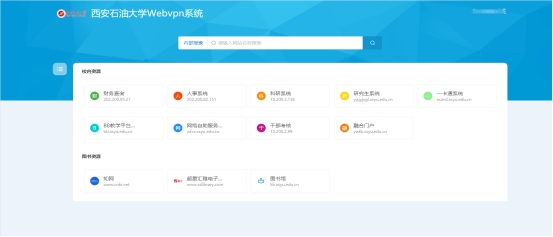 2.輸入統(tǒng)一身份認證用戶名和密碼,即可進入西安石油大學Webvpn系統(tǒng)資源導航界面,如下圖: