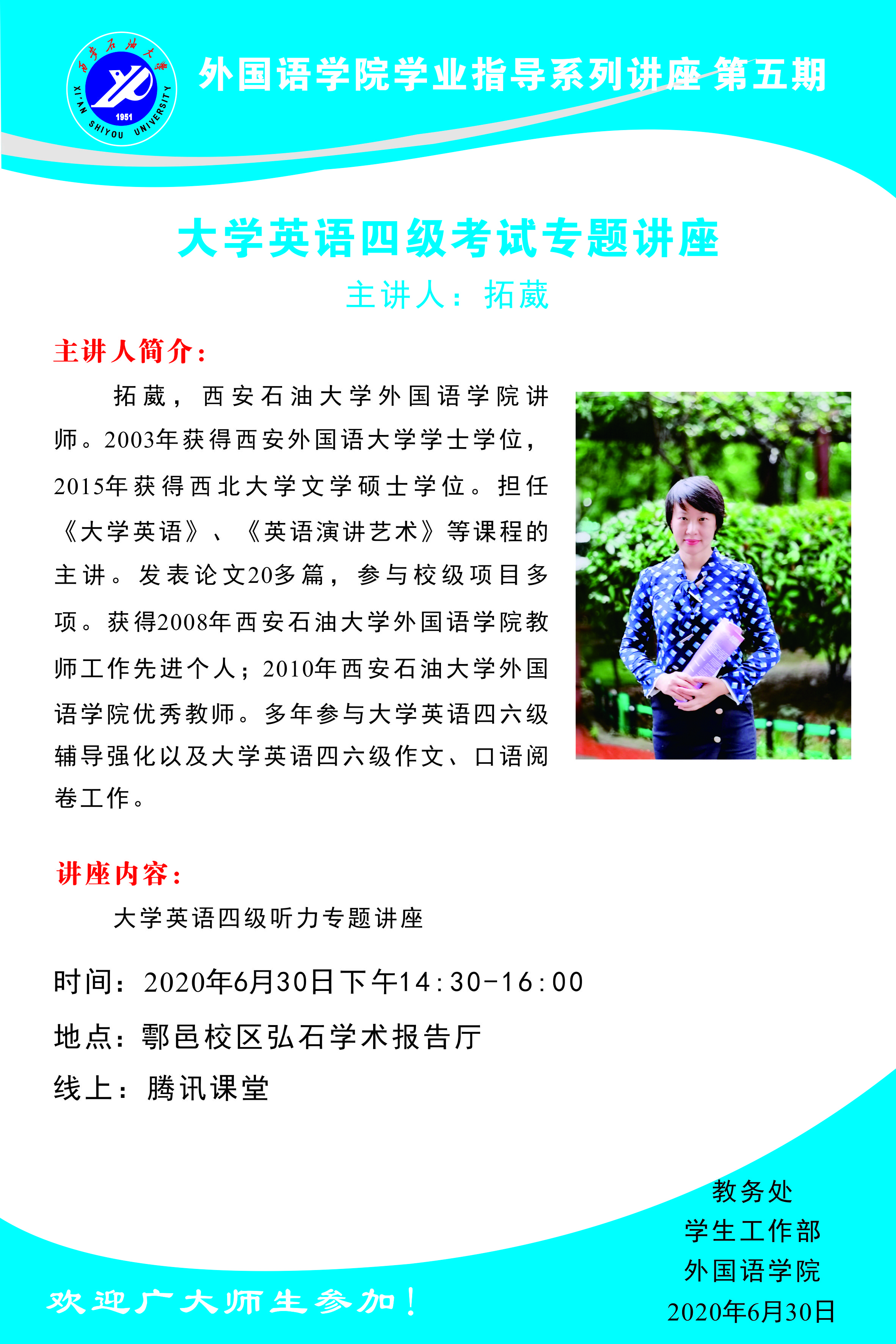 2. 大學(xué)英語四級(jí)聽力專題講座 主講人:拓葳老師