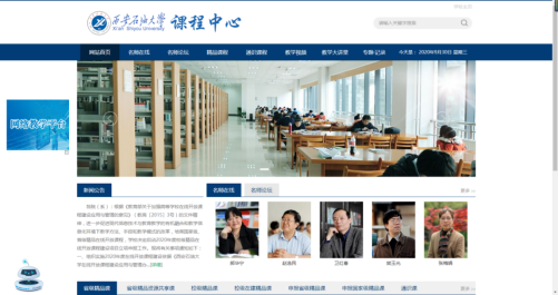 課程中心網(wǎng)站包含:名師在線、名師論壇、精品課程、通識(shí)課程、教學(xué)視頻、教學(xué)大講堂和專題紀(jì)錄等欄目。該網(wǎng)站現(xiàn)已提供12個(gè)教學(xué)名師的課程、154個(gè)精品課程與通識(shí)課程,以及1977個(gè)課程相關(guān)視頻。同時(shí),課程中心網(wǎng)站為師生提供綜合檢索功能,以方便師生查詢與課程相關(guān)的信息。