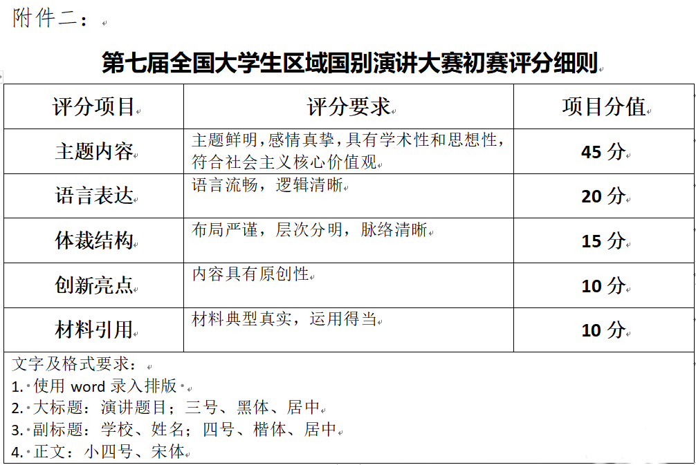 初賽為命題演講稿,參賽者根據(jù)指定命題演講題目選其一,可對(duì)題目作局部調(diào)整,如結(jié)合具體區(qū)域或國(guó)別,完成一篇演講稿(按照5分鐘演講的時(shí)間來準(zhǔn)備具體篇幅),并模擬現(xiàn)場(chǎng)演講進(jìn)行錄像,拍攝方式為橫屏拍攝。參賽者必須于2025年8月20日前將演講稿和視頻發(fā)送到郵箱306639848@qq.com。