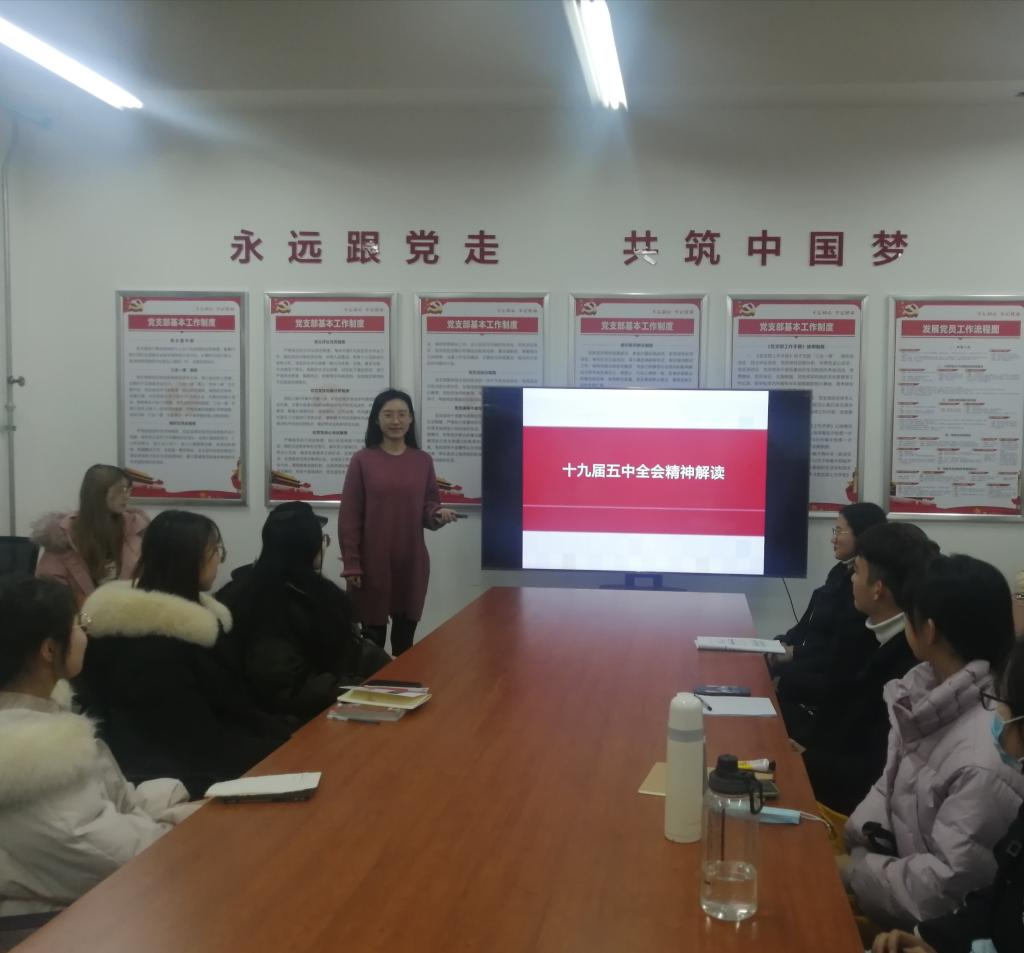本次學(xué)習(xí)會(huì)分為黨課和主題實(shí)踐兩個(gè)環(huán)節(jié)。首先陶李老師以“學(xué)習(xí)貫徹黨的十九屆五中全會(huì)精神”為主題講授黨課。她從全會(huì)的召開背景、主要成果、起草情況、突出特點(diǎn)、重要特點(diǎn)、突出亮點(diǎn)、邏輯主線等十個(gè)方面解讀黨的十九屆五中全會(huì)。在“你問我答”實(shí)踐環(huán)節(jié),全體黨員就黨的十九屆五中全會(huì)精神的學(xué)習(xí)積極發(fā)言,發(fā)表自己學(xué)習(xí)心得,鞏固了學(xué)習(xí)效果,加深了與會(huì)人員對(duì)十九屆五中全會(huì)的理解。
