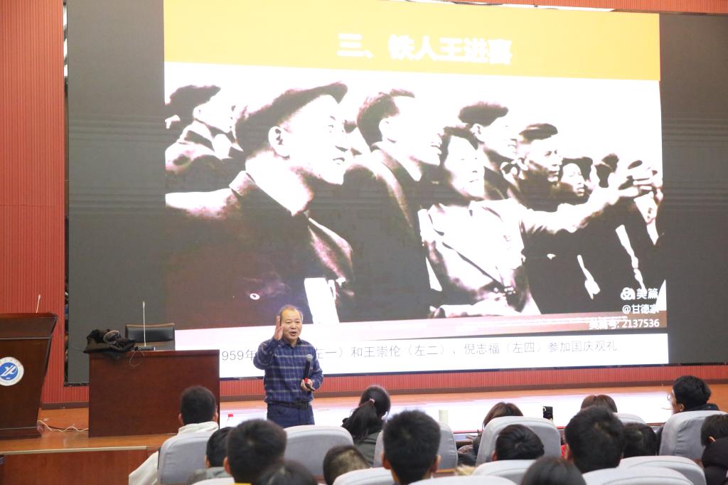 郭崗彥主任長(zhǎng)期致力于大慶精神、鐵人精神的學(xué)習(xí)和研究,對(duì)鐵人王進(jìn)喜的生平事跡和鐵人精神有著獨(dú)特的見(jiàn)解。此次報(bào)告會(huì),郭主任從鐵人精神的歷史地位,鐵人精神產(chǎn)生的時(shí)代背景和鐵人精神帶給我們的啟示三個(gè)方面闡釋了鐵人精神的內(nèi)涵。首先,郭主任通過(guò)對(duì)王進(jìn)喜生平的講解以及他對(duì)中國(guó)石油工業(yè)發(fā)展的突出貢獻(xiàn)的描述,強(qiáng)調(diào)了王進(jìn)喜民族英雄的歷史地位。隨后,郭主任回顧了上世紀(jì)六七十年代中國(guó)缺油少油的歷史背景,在中國(guó)石油極度匱乏的情況下,王進(jìn)喜及所有參加大慶“石油大會(huì)戰(zhàn)”的全體石油工人用“人拉肩扛”“盆端桶提”的方式,為中國(guó)摘掉了“貧油”的帽子。最后,郭主任強(qiáng)調(diào),作為當(dāng)代大學(xué)生,應(yīng)該學(xué)習(xí)王進(jìn)喜“寧可少活二十年,拼命也要拿下大油田”的拼搏精神,堅(jiān)定理想信念,明確學(xué)習(xí)目標(biāo),努力將自己培養(yǎng)成德智體美勞全面發(fā)展的社會(huì)主義建設(shè)者和接班人,為實(shí)現(xiàn)中華民族的偉大復(fù)興貢獻(xiàn)自己的力量。