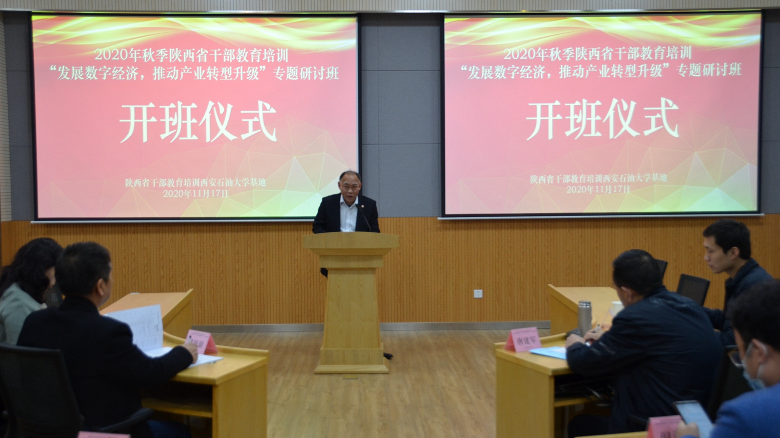2020年11月16日至22日,由省委組織部主辦、省干部教育培訓西安石油大學基地承辦的2020年秋季陜西省干部教育培訓“發(fā)展數(shù)字經(jīng)濟,推動產(chǎn)業(yè)轉(zhuǎn)型升級”專題研討班順利舉辦。來自省級相關(guān)部門、縣(市、區(qū))政府、省屬國有企業(yè)及省屬高校的45位縣處級領(lǐng)導干部參加了培訓。