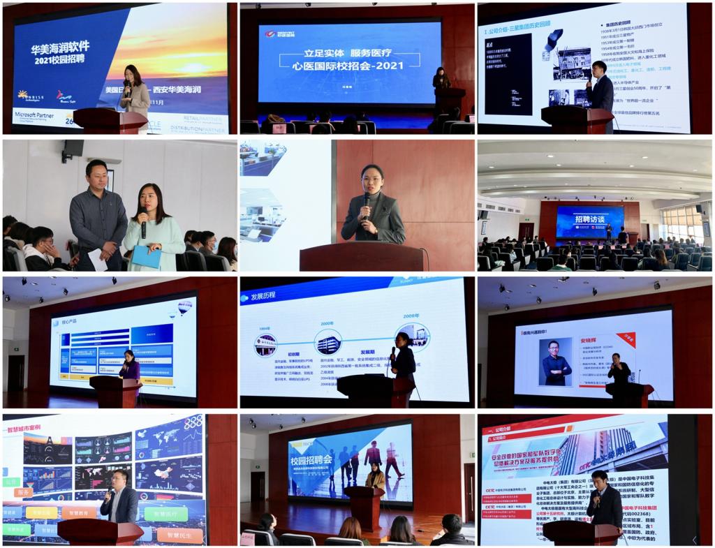 活動中,西安軟件園12家參會的IT企業(yè)代表進行一一宣講,各招聘單位詳細介紹了企業(yè)的發(fā)展戰(zhàn)略、業(yè)務范圍、人才需求、企業(yè)文化和福利待遇等同學們關(guān)心的具體問題。