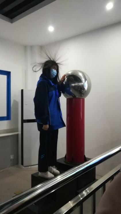 進(jìn)入實(shí)驗(yàn)室后,同學(xué)們就被實(shí)驗(yàn)室內(nèi)各種生動(dòng)新奇的演示項(xiàng)目所吸引,其中“特斯拉放電”實(shí)驗(yàn)最為引人關(guān)注。在我院教師的演示下,同學(xué)們興致勃勃地觀看了高頻高壓特斯拉線圈放電現(xiàn)象??諝庵胁粩嗟亻W現(xiàn)出數(shù)條一米長的電弧,并且伴隨著極具動(dòng)感的音樂,同學(xué)們都深深地被這種神奇的物理現(xiàn)象所震撼。在教師們和工作人員的引導(dǎo)下,同學(xué)們紛紛上前親身體驗(yàn)“怒放沖冠”、“人體導(dǎo)電”、“法拉第籠”、“茹科夫斯基轉(zhuǎn)椅”、“高溫?zé)釞C(jī)”等各種實(shí)驗(yàn)項(xiàng)目。