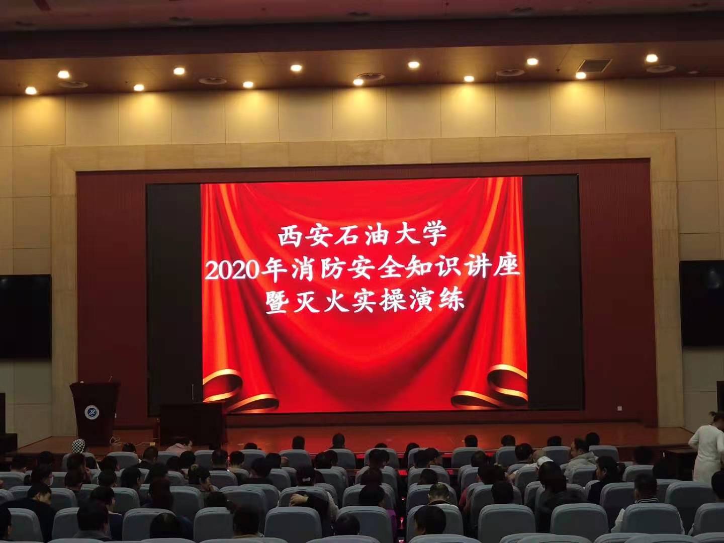 2020年“11.9”是全國第29個消防宣傳日,主題為:“關(guān)注消防,生命至上”。為了貫徹落實國家應(yīng)急管理部消防救援局、陜西省教育廳、西安石油大學(xué)關(guān)于維護消防安全的有關(guān)文件精神,提升全民消防安全素質(zhì)和社會抵御災(zāi)害能力,嚴(yán)格排查隱患,防控火災(zāi)事故。2020年11月9日下午,保衛(wèi)處聯(lián)合后勤管理處、資產(chǎn)經(jīng)營處在鄠邑校區(qū)舉行“西安石油大學(xué)2020年消防安全知識講座暨滅火實操演練”。