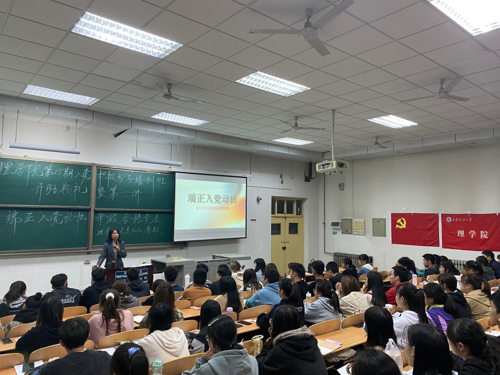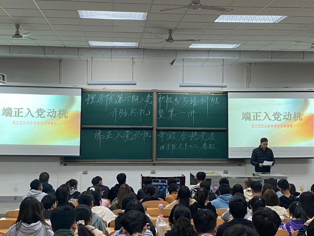 11月9日晚19點(diǎn),理學(xué)院第十五期入黨積極分子培訓(xùn)班開班典禮暨第一講——“端正入黨動(dòng)機(jī),爭(zhēng)做合格黨員”在鄠邑校區(qū)教學(xué)A區(qū)239教室舉行。理學(xué)院黨委書記廖敏老師主講,學(xué)生管理辦公室主任丁亦喆老師主持,各年級(jí)輔導(dǎo)員及200名學(xué)員參加學(xué)習(xí)。