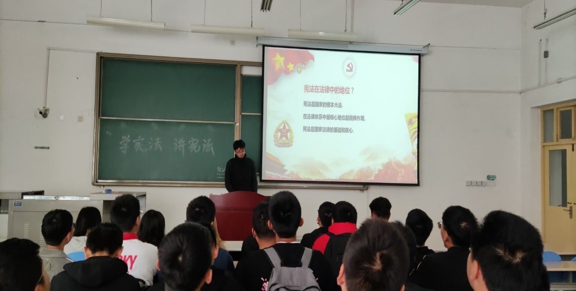 對于“學憲法、講憲法”系列活動,各班主要通過班會的形式使同學們學習憲法內(nèi)容,提高對憲法的認知程度,了解憲法的重要性,營造出濃厚的學法、講法、守法的氛圍,調(diào)動了全體同學學法、用法的情緒,呼吁同學們遵法守法從自身做起,爭做文明時代的好青年、遵紀守法的好公民,為實現(xiàn)中國特色社會主義法治、實現(xiàn)偉大的中國夢注入新鮮的正能量。
