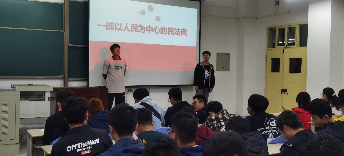 對于開展民法典主題教育活動,我院師生積極響應、主動參與,以班為單位開展主題班會活動,各班委積極引導、認真組織,使同學們了解《民法典》的編纂歷程和鮮明特點,尤其是《民法典》中涉及大家切身利益的部分,例如:如糾紛解決、求職陷阱等,通過系列活動加深對了同學們《民法典》的理解與掌握。