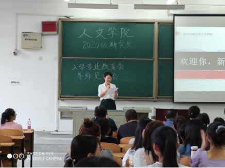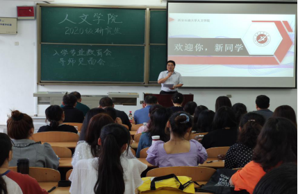 2020年9月11日上午9點(diǎn),2020級研究生專業(yè)教育大會暨導(dǎo)師見面會在人文學(xué)院鄠邑校區(qū)B210教室正式舉行。本次會議由人文學(xué)院副黨委書記盛丹主持,人文學(xué)院黨委書記余小勇、院長李濤、副院長方松林、研究生秘書張盼、輔導(dǎo)員崔馨文以及2020級人文學(xué)院研究生指導(dǎo)老師出席此次會議,107名2020級研究生新生參會。