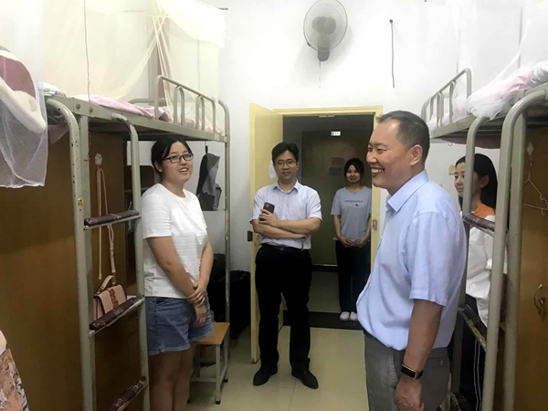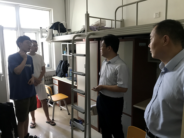 9月7日下午,齊仲鋒書記、宋海洋副院長與輔導員王雷老師到每間宿舍看望慰問了新一屆研究生。齊書記歡迎同學們的到來,親切詢問了大家的需要以及對學院研究生教育工作的要求,并勉勵同學們珍惜學習機會,不負韶華,勇于攀登科學高峰。走訪過程中,院領導認真聆聽了同學們對學校整體情況和迎新工作的感受及學習生活方面的意見建議,就大家關心的話題、提出的問題進行了詳細耐心解答和說明。