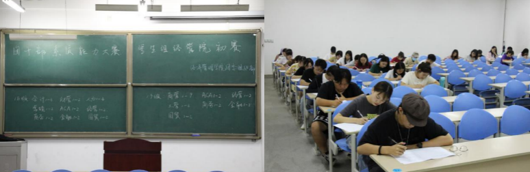 筆試選拔于9月4日晚在B110教室舉行。筆試主要考察團干部對黨團理論知識的掌握程度,具體包括馬克思主義理論、習近平新時代中國特色社會主義思想、黨的十九大精神等基本內(nèi)容以及高校共青團領域的重要文件、我校共青團工作的基本情況等。
