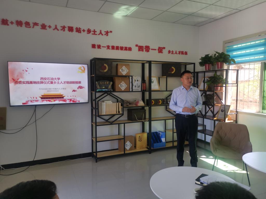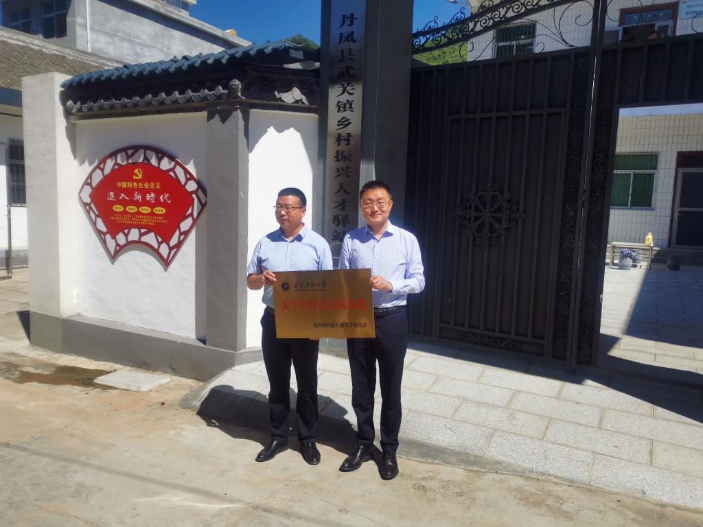 在武關(guān)鎮(zhèn)人才驛站,丹鳳縣人民政府副縣長張爭京與我校團(tuán)委書記何國強(qiáng)共同為“西安石油大學(xué)大學(xué)生社會實踐基地”掛牌。