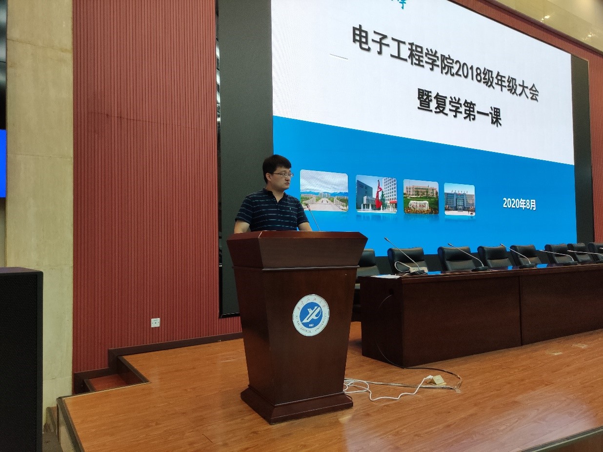 根據(jù)《西安石油大學(xué)秋季學(xué)期開學(xué)和疫情防控工作方案》要求,結(jié)合學(xué)院具體工作安排。8月28日,電子工程學(xué)院2018級(jí)在鄠邑校區(qū)弘石學(xué)術(shù)報(bào)告廳分批次開展了“復(fù)學(xué)第一課”。會(huì)議由學(xué)院2018級(jí)輔導(dǎo)員錢宇航主持,學(xué)院學(xué)生管理辦公室主任周毅華出席了本次會(huì)議。