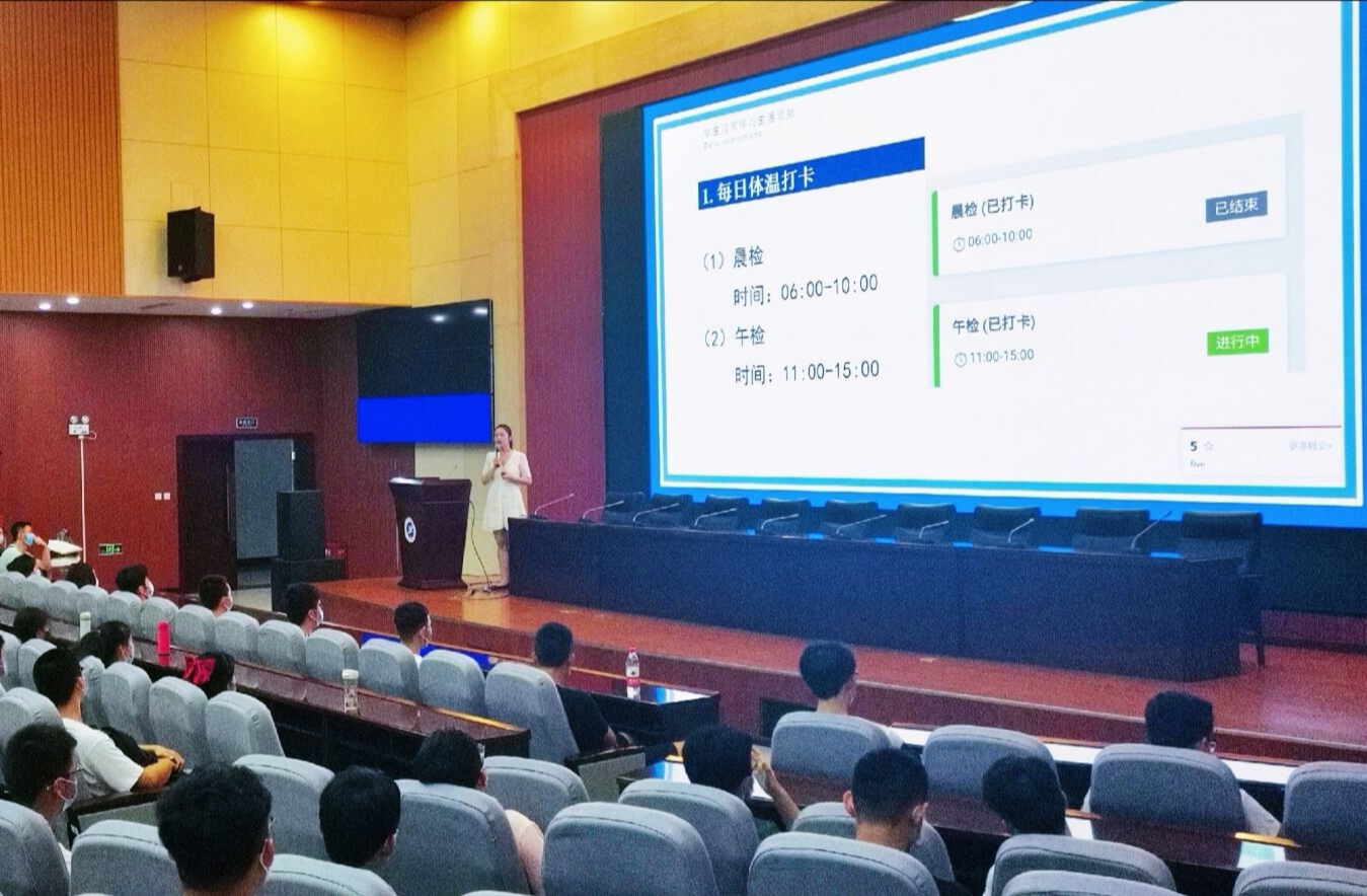 本次大會從嚴(yán)格健康監(jiān)測管理、嚴(yán)格校園出入管理和大學(xué)的意義三方面展開。其中嚴(yán)格健康監(jiān)測管理要求學(xué)生按時準(zhǔn)確完成每天晨、午檢打卡,如遇同學(xué)有發(fā)熱癥狀應(yīng)第一時間聯(lián)系輔導(dǎo)員老師并及時就醫(yī);嚴(yán)格校園出入管理要求學(xué)生確因特殊原因需要外出的,須在“我在校園”管理平臺上提交相關(guān)證明材料辦理請假手續(xù)。大會后半部分圍繞大學(xué)對普通人的意義展開,沈軒羽老師告誡同學(xué)們,大學(xué)是人生的跳板,要想順利步入廣闊天地,就得好好利用大學(xué)這四年,并在日常的學(xué)習(xí)與生活中為自己確立明確目標(biāo),要學(xué)會時間管理,做自己的時間管理大師。假期線上自由的學(xué)習(xí)時光已經(jīng)過去,沈老師希望同學(xué)們能夠反思過去,展望未來,端正姿態(tài)來迎接余下的大學(xué)生活,在多年后回顧大學(xué)生活時,不悔當(dāng)初。
