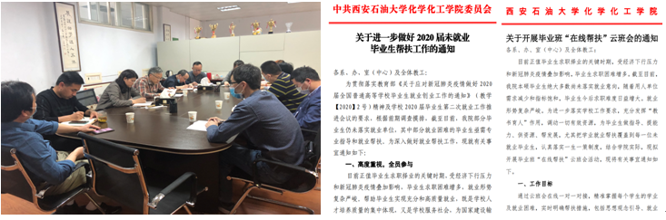 為進(jìn)一步做好畢業(yè)生就業(yè)工作,積極應(yīng)對疫情期間空中求職、網(wǎng)絡(luò)就業(yè)的新形勢新挑戰(zhàn),積極開拓畢業(yè)生就業(yè)市場,全面提高畢業(yè)生就業(yè)質(zhì)量,真正做到“拔高擴(kuò)中兜底,靶向分類施策,實現(xiàn)共同就業(yè)”,在學(xué)校黨委部署和就業(yè)指導(dǎo)中心的指導(dǎo)下,化學(xué)與化工學(xué)院黨委高度重視,主動部署落實,院內(nèi)聯(lián)動協(xié)作,搭建線上平臺,多措并舉推進(jìn),扎實開展2020屆畢業(yè)生就業(yè)幫扶工作。