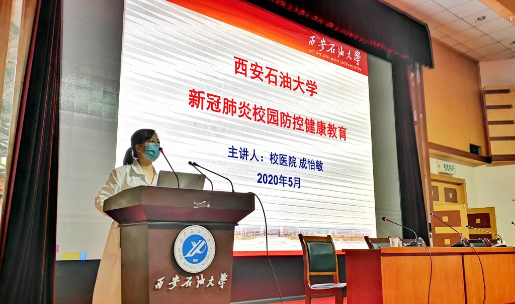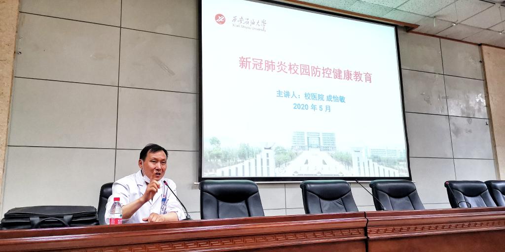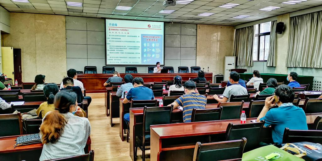 學(xué)校根據(jù)上級部門關(guān)于2020年春季學(xué)期學(xué)生返校有關(guān)要求,結(jié)合學(xué)校疫情防控工作實際,定于2020年5月7日起安排學(xué)生分期分批、錯峰有序返校。為了做好開學(xué)準(zhǔn)備和開學(xué)后校園疫情防控工作,保障師生安全。2020年5月6日~7日,針對首批返校學(xué)生為2020屆碩士研究生和2019級博士生,校醫(yī)院副主任醫(yī)師、住院部主任成怡敏在雁塔校區(qū)學(xué)術(shù)報告廳為研究生輔導(dǎo)員和學(xué)工部干部開展“新冠肺炎疫情防控知識培訓(xùn)”系列講座活動。這次活動由校醫(yī)院崔廣志院長主持,他強(qiáng)調(diào)了開學(xué)前后的具體注意事項。校醫(yī)院部分醫(yī)務(wù)人員、研究生輔導(dǎo)員和學(xué)工部領(lǐng)導(dǎo)干部共計80余人聆聽了講座。