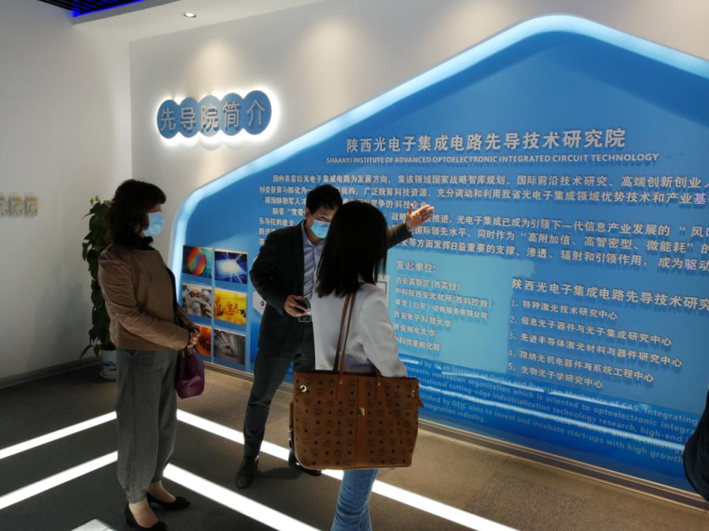 在光電子集成專業(yè)化眾創(chuàng)空間,調(diào)研組重點(diǎn)了解了陜西光電集成電路先導(dǎo)技術(shù)研究院的發(fā)展情況,特別是政府引導(dǎo)、金融資本、民間投資共建的光電子基金在創(chuàng)新科技金融體系、加速成果轉(zhuǎn)化應(yīng)用中的重要作用,及其對陜西省眾創(chuàng)空間借助金融工具實(shí)現(xiàn)高質(zhì)量發(fā)展的成功經(jīng)驗(yàn)。