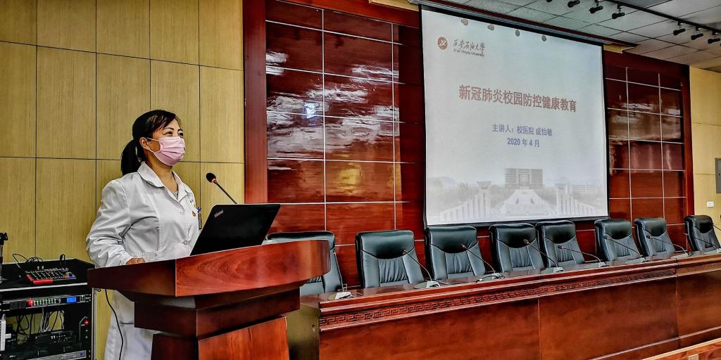 2020年4月19日,陜西省教育廳發(fā)布了“陜西省教育廳關(guān)于做好陜西高校2020年春季學(xué)期開學(xué)工作的通知(陜教明電〔2020〕3號(hào))”。就全省高校2020年春季學(xué)期開學(xué)工作明確4月27日起,各高??梢蚤_始安排學(xué)生錯(cuò)時(shí)錯(cuò)峰返校,具體返校時(shí)間由各高校統(tǒng)籌安排。為做好學(xué)生返校工作準(zhǔn)備,校醫(yī)院立即嚴(yán)格執(zhí)行教育廳及學(xué)校要求,認(rèn)真做好組織統(tǒng)籌,不斷拓展健康教育方式,扎實(shí)開展開學(xué)前后新冠肺炎疫情防控宣傳教育各項(xiàng)工作。2020年4月24日,校醫(yī)院成怡敏副主任醫(yī)師在雁塔校區(qū)第五會(huì)議室為全體后勤人員進(jìn)行了題為《新冠肺炎校園防控健康教育》健康講座活動(dòng)。