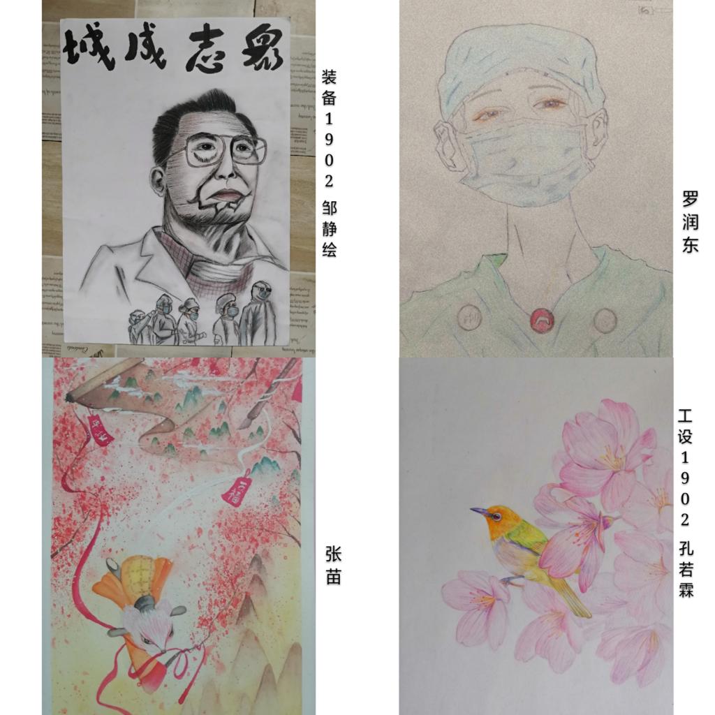 同學(xué)們用筆下色彩和文字表達(dá)這信心和力量,以“云端”書畫寄真情,守護(hù)生命和希望。相信我們定能戰(zhàn)勝這場(chǎng)沒有硝煙的“戰(zhàn)爭(zhēng)”,世界人民定能勝利!