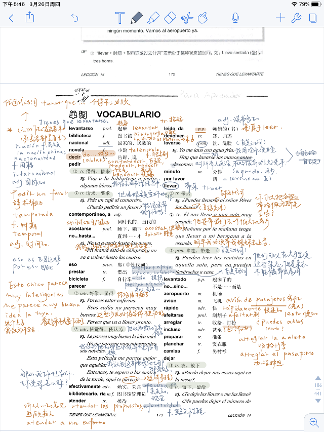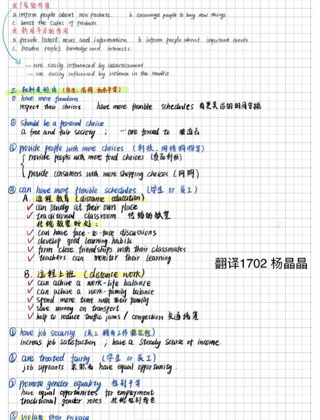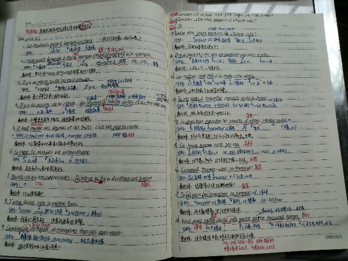 翻譯專業(yè):同學們筆跡清晰,充分利用客戶端,進行無紙化學習,筆記也像繪畫一樣色彩斑斕,重點清晰。