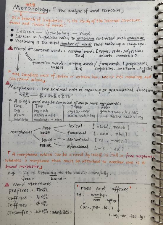 英語專業(yè):同學們的筆記字跡優(yōu)美,形式多樣,用線條將知識點串聯(lián)起來,條理清晰。
