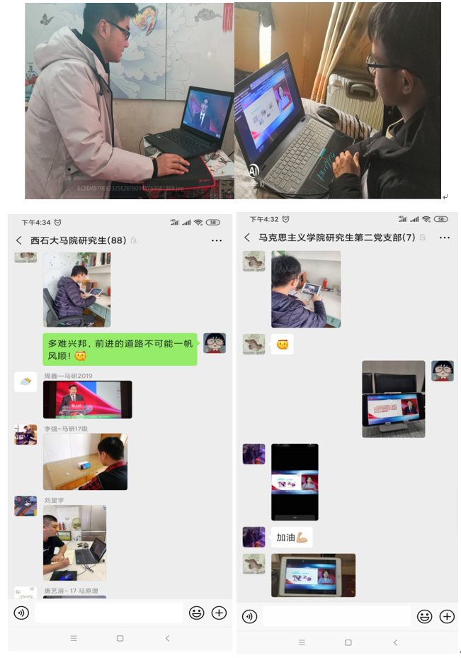我校研究生學(xué)生黨支部黨員、研究生會(huì)學(xué)生干部、馬克思主義研習(xí)社學(xué)生干部也以不同形式組織了線上集體觀看、學(xué)習(xí)與討論。大家紛紛表示這堂特殊思政課非常及時(shí)、非常精彩,是一堂高水平的形勢(shì)與政策教育課。
