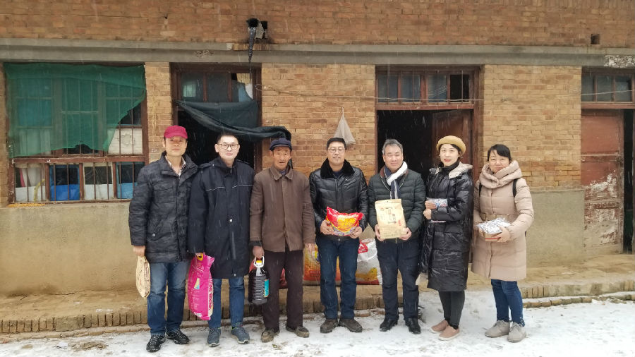 1月15日早八點,西安南郊飄起今冬第一場雪花。因惦記扶貧家庭,不知其年前是否有需要解決的困難、是否備足了御寒的衣物。為能夠了解詳細情況,及時送去圖書館教職工的溫暖和關(guān)懷,由張偉副館長帶隊,圖書館教職工一行6人不畏嚴寒,迎著風雪赴永壽縣堅固村開展精準扶貧。
