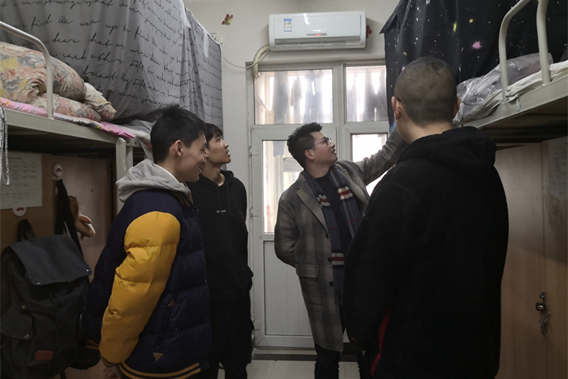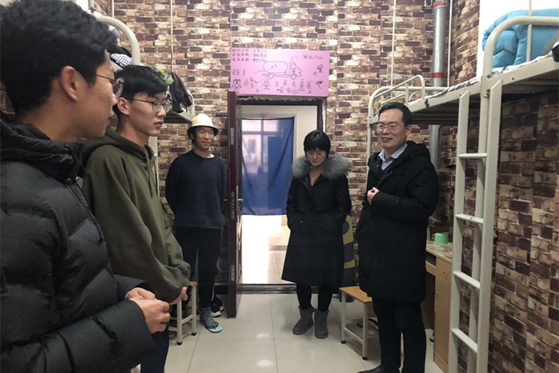走訪過(guò)程中張建高副書(shū)記與學(xué)生們進(jìn)行親切交談,送去節(jié)日問(wèn)候,了解同學(xué)們的思想動(dòng)態(tài)以及期末復(fù)習(xí)情況,同時(shí)對(duì)同學(xué)們進(jìn)行考風(fēng)考紀(jì)教育并強(qiáng)調(diào)了考試紀(jì)律問(wèn)題。各年級(jí)輔導(dǎo)員老師親切提醒學(xué)生做好期末復(fù)習(xí)備考,爭(zhēng)取獲得優(yōu)異成績(jī)。
