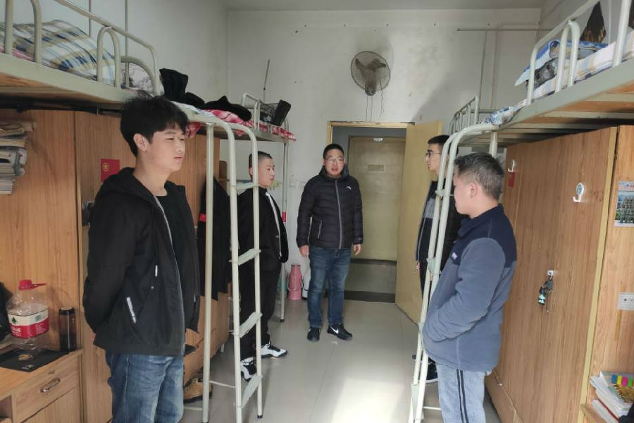 為切實(shí)做好節(jié)前安全教育,進(jìn)一步強(qiáng)化學(xué)生冬季宿舍安全意識(shí),12月31日下午,石油工程學(xué)院黨委副書(shū)記張建高帶領(lǐng)各年級(jí)輔導(dǎo)員深入學(xué)生宿舍開(kāi)展節(jié)前安全檢查工作。