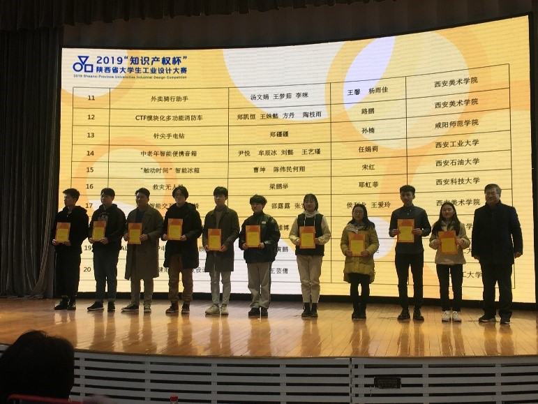 2019年12月30日下午15:00,由陜西省教育廳和省知識產(chǎn)權(quán)局主辦、西安美術(shù)學(xué)院承辦的2019年“知識產(chǎn)權(quán)杯”陜西省大學(xué)生工業(yè)設(shè)計大賽獲獎作品頒獎儀式在西安美術(shù)學(xué)院美術(shù)館A館舉行。本次大賽全省共有來自西安石油大學(xué)、西安建筑科技大學(xué)、西安理工大學(xué)、西安交通大學(xué)等20余所省內(nèi)高校學(xué)生參賽。