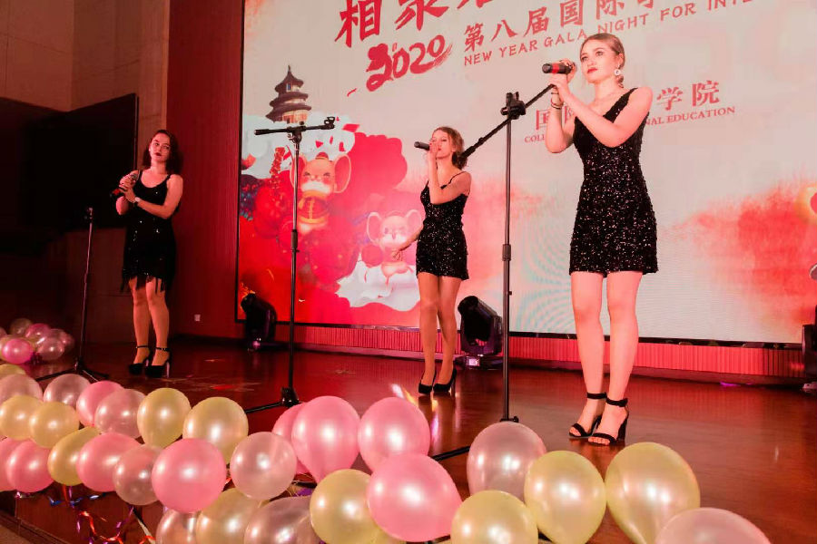 董皓院長(zhǎng)在晚會(huì)節(jié)目開始前向全體留學(xué)生致新年賀詞。她首先代表學(xué)院向全體留學(xué)生致以新年的祝福和節(jié)日的慰問,對(duì)長(zhǎng)期以來支持留學(xué)生教育事業(yè)發(fā)展的各部門、院(系)表示衷心的感謝。她表示,2019年是學(xué)院走過不平凡的一年,在全院師生共同努力下,留學(xué)生規(guī)模突破1000人,留學(xué)生教學(xué)質(zhì)量建設(shè)不斷推進(jìn),校企合作留學(xué)生培養(yǎng)工作穩(wěn)步實(shí)施,留學(xué)生各類競(jìng)賽成績(jī)斐然,留學(xué)生教育平穩(wěn)健康發(fā)展。