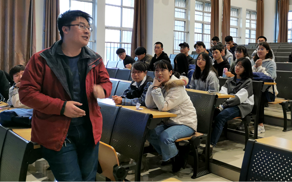 接著,系黨支部書記徐向前老師結(jié)合“不忘初心、牢記使命”主題教育,向同學(xué)們介紹了學(xué)校和我院主題教育的開展情況。他強(qiáng)調(diào)指出,教師的職責(zé)就是為學(xué)生傳道、授業(yè)、解惑,作為黨員教師,完全有責(zé)任有義務(wù)走在前列,充分發(fā)揮先鋒模范作用,既教書又育人。徐老師還就期中教學(xué)檢查中同學(xué)們的反饋意見,組織老師與同學(xué)們一起交流互動(dòng),答疑解惑,引導(dǎo)同學(xué)們正確認(rèn)識(shí)和積極面對(duì)學(xué)習(xí)生活中面臨的困難。