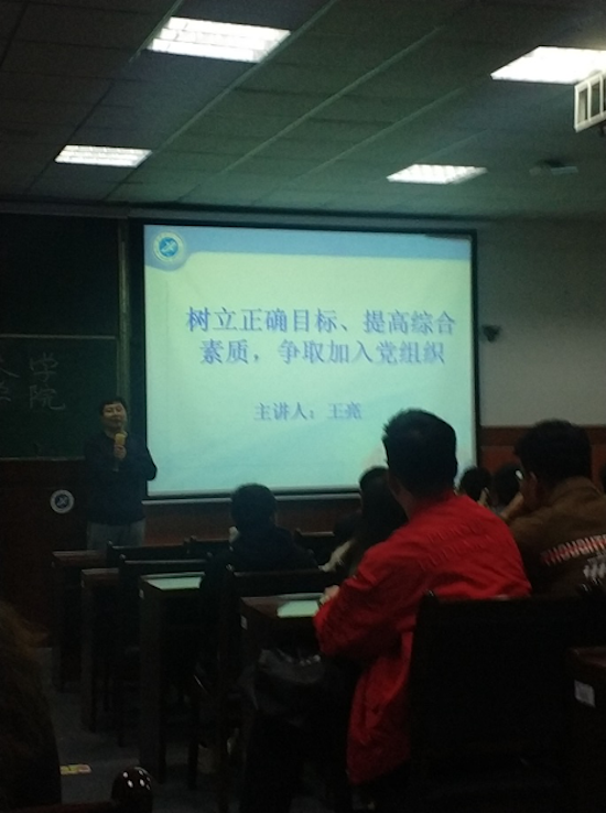 與此同時(shí),雁塔校區(qū)入黨積極分子培訓(xùn)班第一講在本部東階201室舉辦,由校黨委組織部副部長(zhǎng)王亮以“樹立正確目標(biāo),提高綜合素質(zhì),爭(zhēng)取加入黨組織”為題講授。王部長(zhǎng)提出“未進(jìn)黨的門,先做黨的人”,要求入黨積極分子要樹立正確的人生目標(biāo),培養(yǎng)明確的行為傾向,提高綜合素質(zhì),努力做到思想入黨。他強(qiáng)調(diào),要樹立正確的人生目標(biāo),需要不斷學(xué)習(xí),提升素養(yǎng),加強(qiáng)自信,樂(lè)觀拼搏。不斷學(xué)習(xí),提升素養(yǎng)是肩負(fù)責(zé)任、人生發(fā)展和適應(yīng)時(shí)代的需要。只有學(xué)習(xí)有深度,認(rèn)識(shí)才能有高度;要及時(shí)思考目標(biāo)定位,明確如何學(xué)會(huì)做人、做事、學(xué)習(xí);要明確自己的局限,明確目標(biāo),征服自己才是最大的勝利。他希望同學(xué)們加強(qiáng)學(xué)習(xí),增強(qiáng)品質(zhì),不斷提升黨性修養(yǎng),深入實(shí)踐,提高素質(zhì),充分發(fā)揮模范作用,勇于創(chuàng)新。希望同學(xué)們懂得責(zé)任和奉獻(xiàn),為把祖國(guó)建設(shè)得更加美好而奮斗。